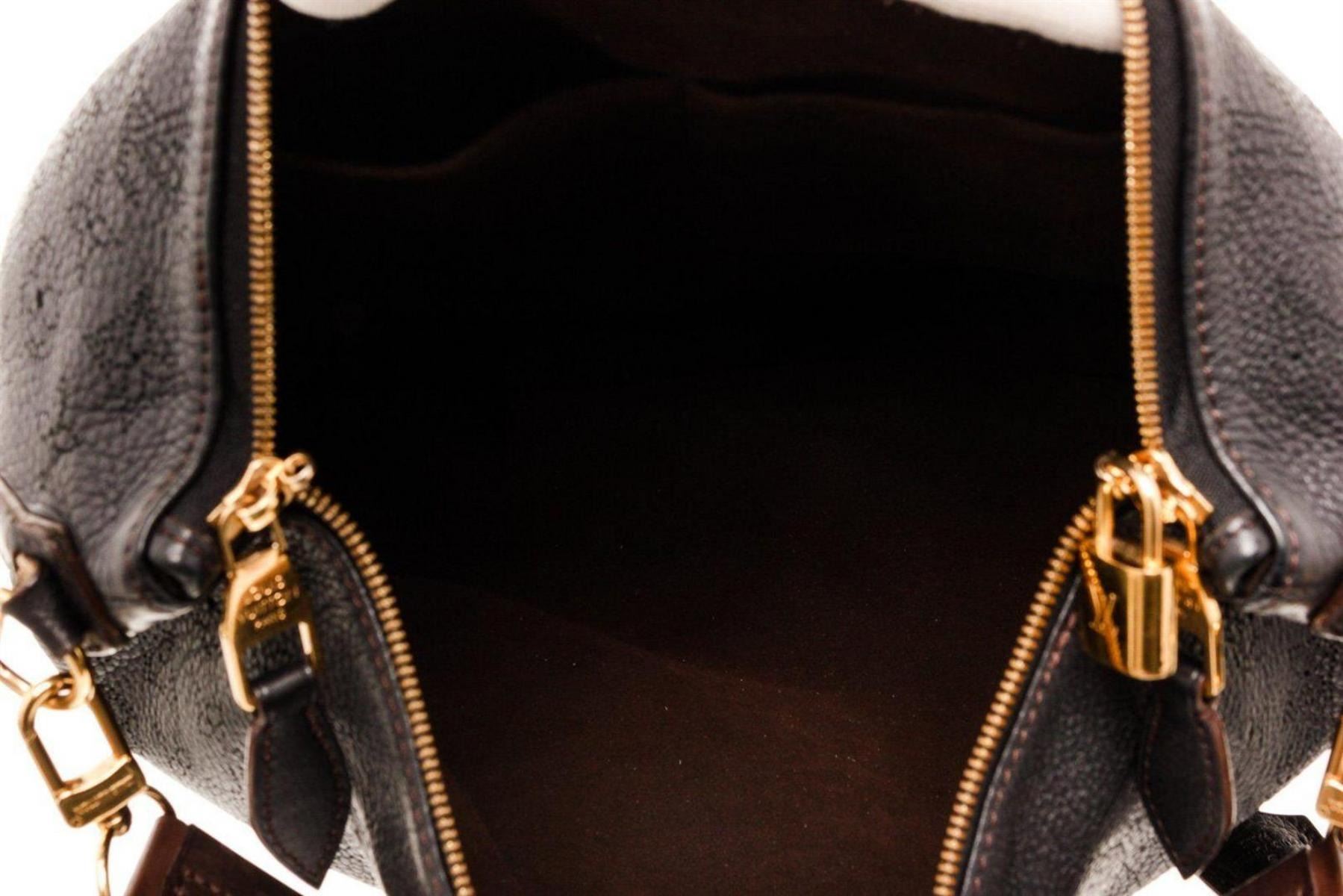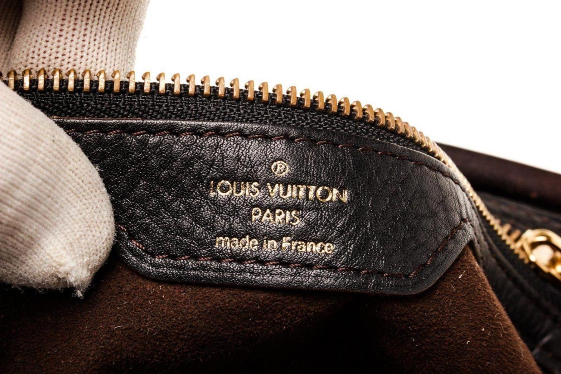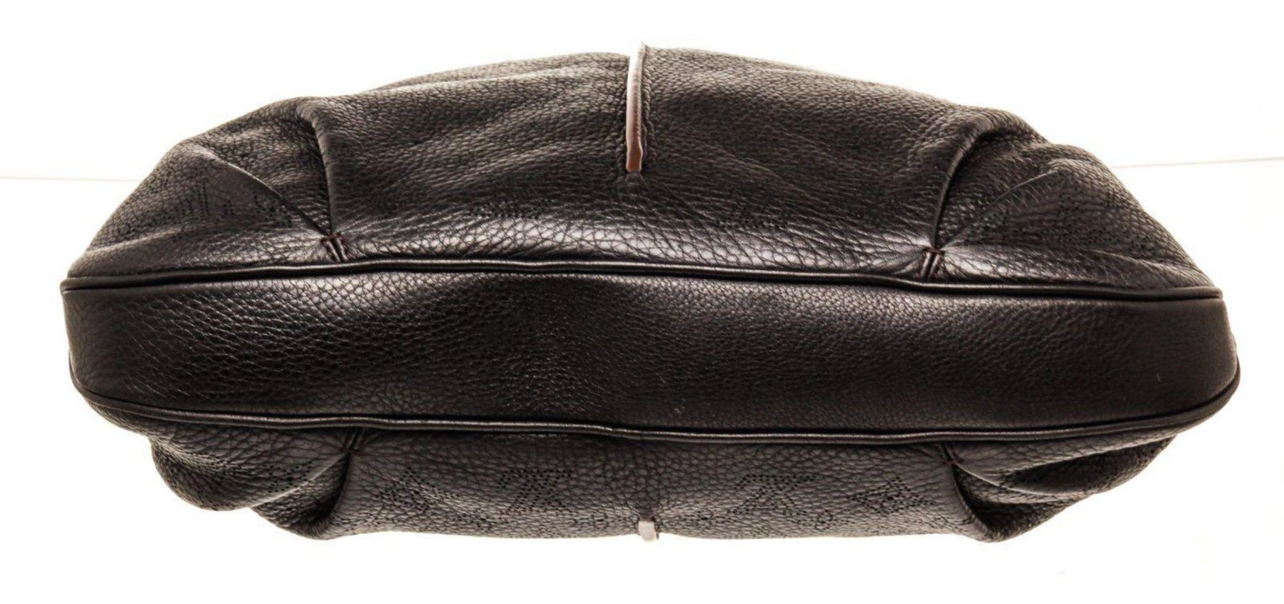 Louis Vuitton Black Leather Selene MM Hobo Bag with material leather, gold-tone hardware, trim tan vachetta leather, interior three compartment pocket, shoulder strap and zipper closure.