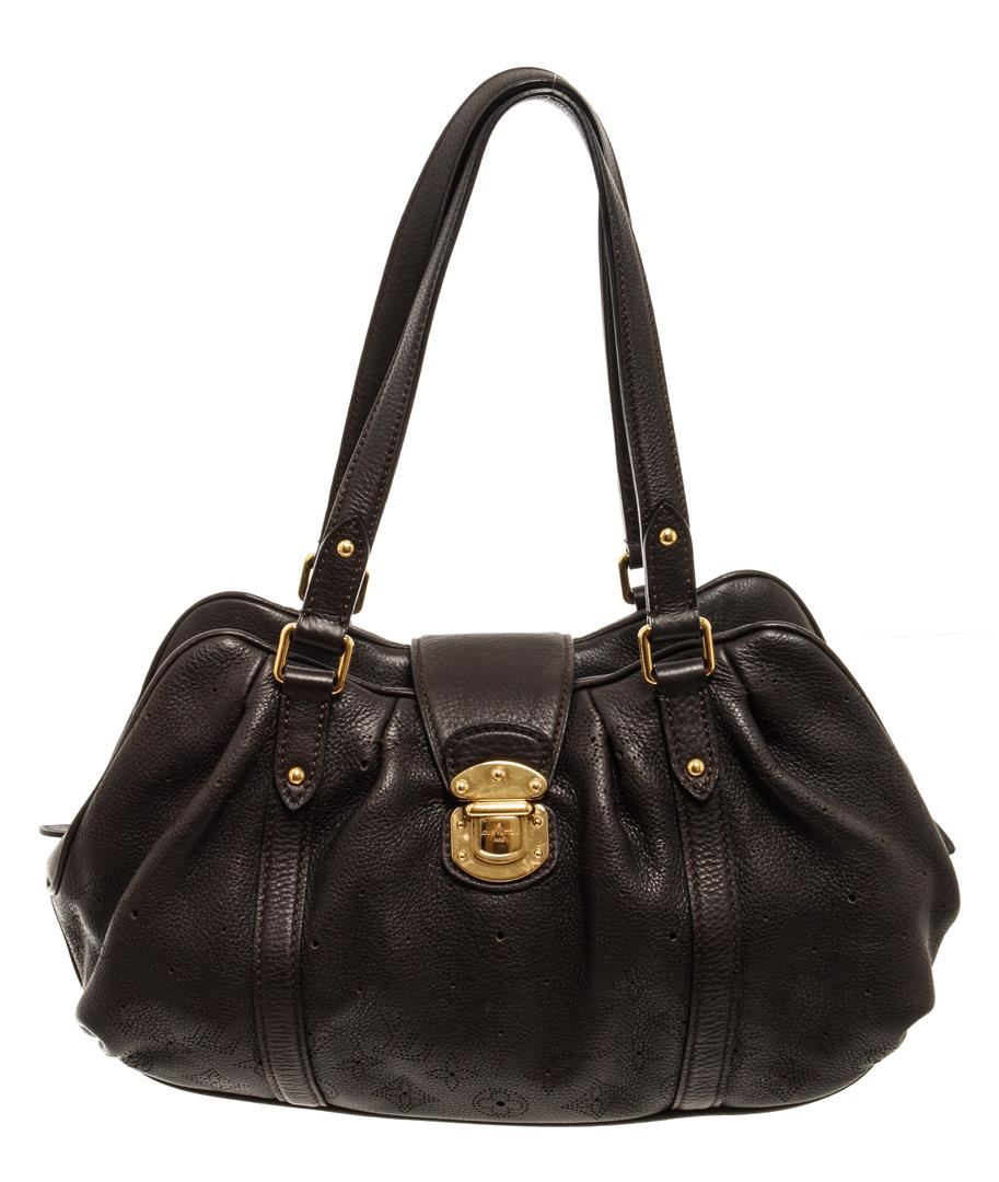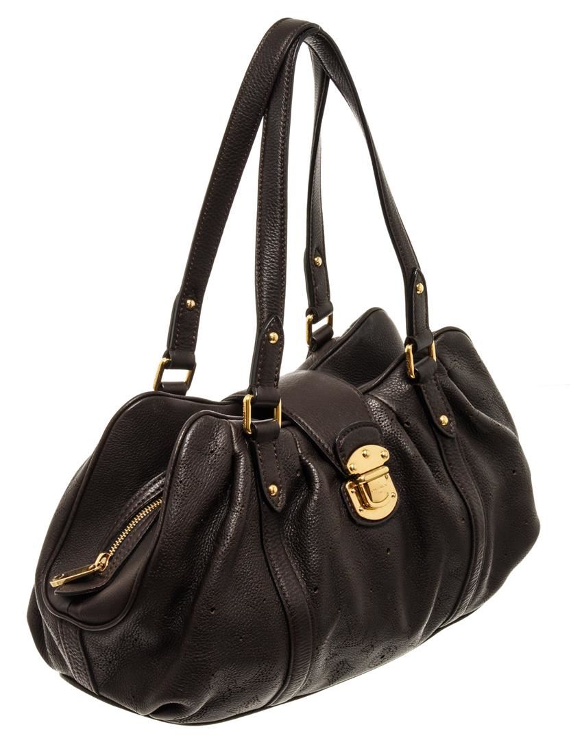 One Louis Vuitton Black Monogram Canvas Lunar PM Hobo Bag. Item is sold AS-IS. All available information is listed in the description and shown in the photo. Louis Vuitton Black Monogram Canvas Lunar PM Hobo Bag with gold-tone hardware, trim black vachetta leather, interior slip pocket, shoulder strap and zipper closure.