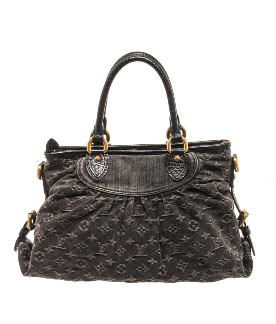 One Louis Vuitton Black Monogram Denim Neo Cabby MM Shoulder Bag. Item is sold AS-IS. All available information is listed in the description and shown in the photo. louis vuitton black monogram denim neo cabby mm shoulder bag with gold-tone hardware, black denim monogram jacquard top zip, side buckle fastening, two rolled top handles, internal logo patch internal patch pockets, full lining metal feet.