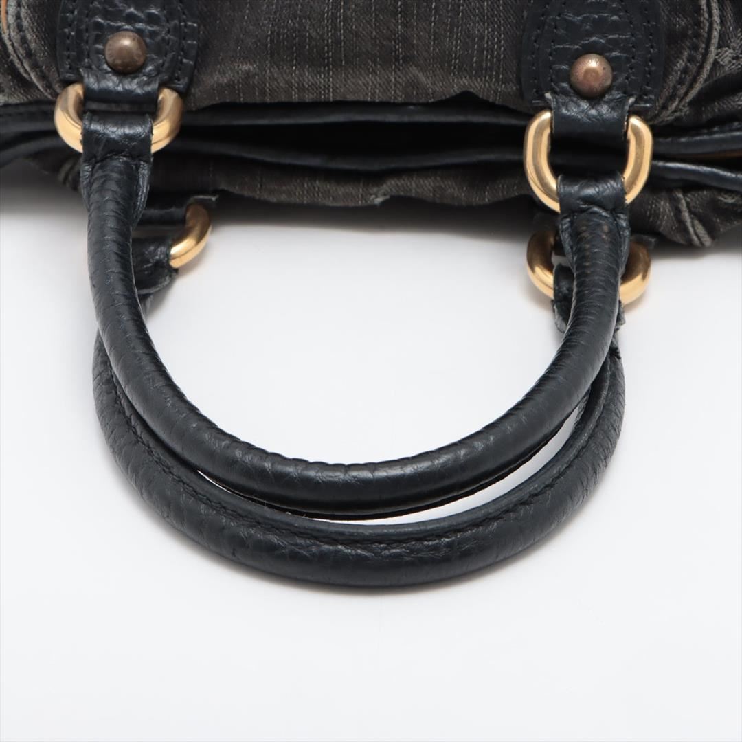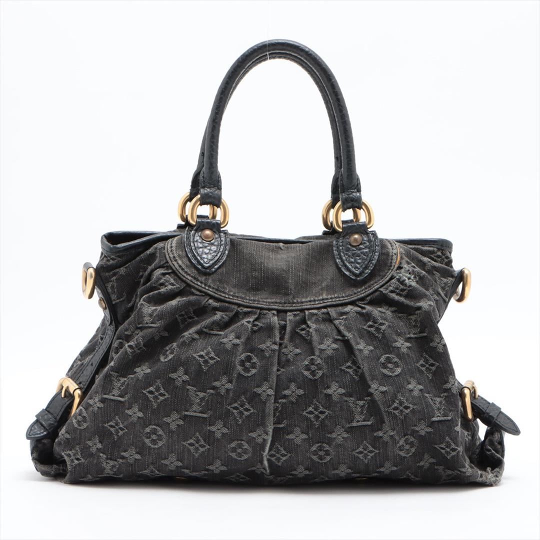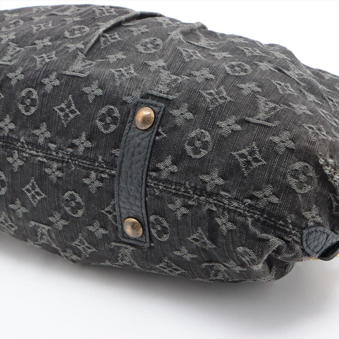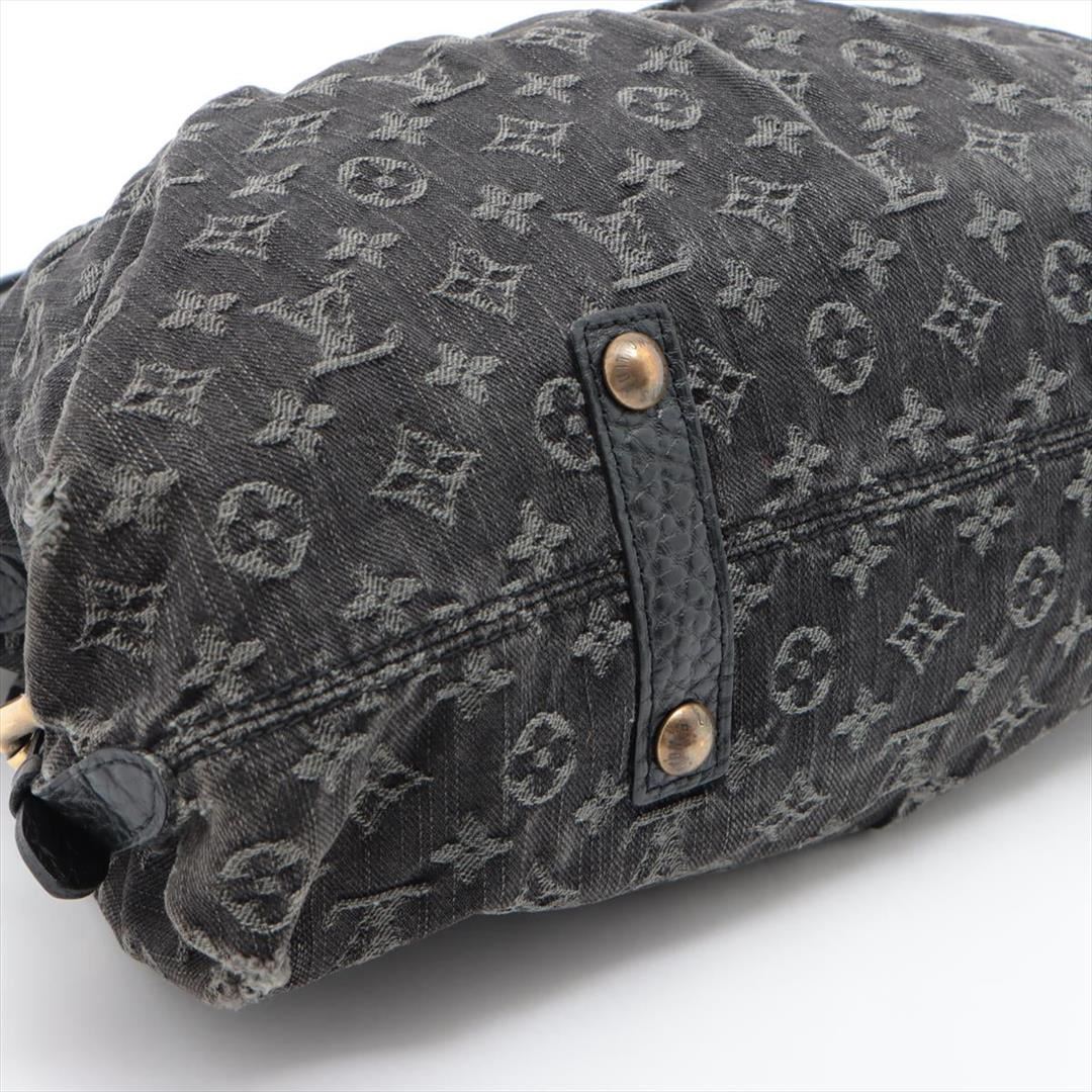 One Louis Vuitton Black Monogram Denim Neo Cabby MM Shoulder Bag. Item is sold AS-IS. All available information is listed in the description and shown in the photo. Black Monogram denim of Louis Vuitton Neo Cabby MM Shoulder Bag with gold-tone hardware, black leather trim, two rolled handles with one detachable shoulder strap, marigold Alcantara lining with dual interior pockets and zip closure at top. Height: 10.5" Width: 15" Depth: 5" Shoulder Strap Drop: 9.5" Handle Drop: 5"