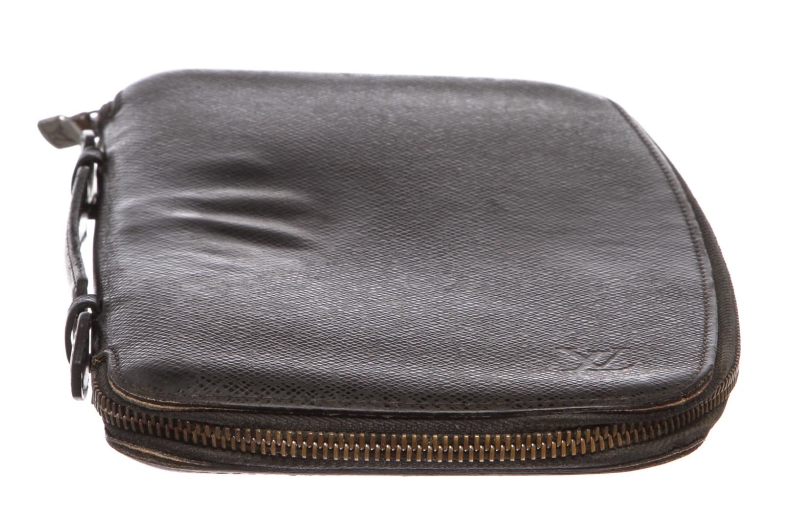 Taiga leather Louis Vuitton Zippy Atoll organizer, tonal leather lining, five slit pockets, single interior zip pocket, 12 card slots, handle at side with embossed logo at front and wrap around zip closure.