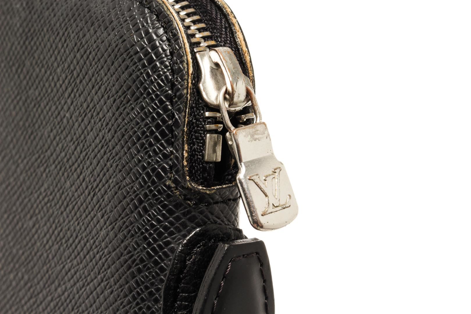 One Louis Vuitton Black Taiga Leather Atoll Organizer Wallet. Item is sold AS-IS. All available information is listed in the description and shown in the photo. Louis Vuitton Black Taiga Leather Atoll Organizer Wallet with silver tone hardware, black leather trim, black leather lining, interior zip pocket, open slot pockets, and zipper closure.