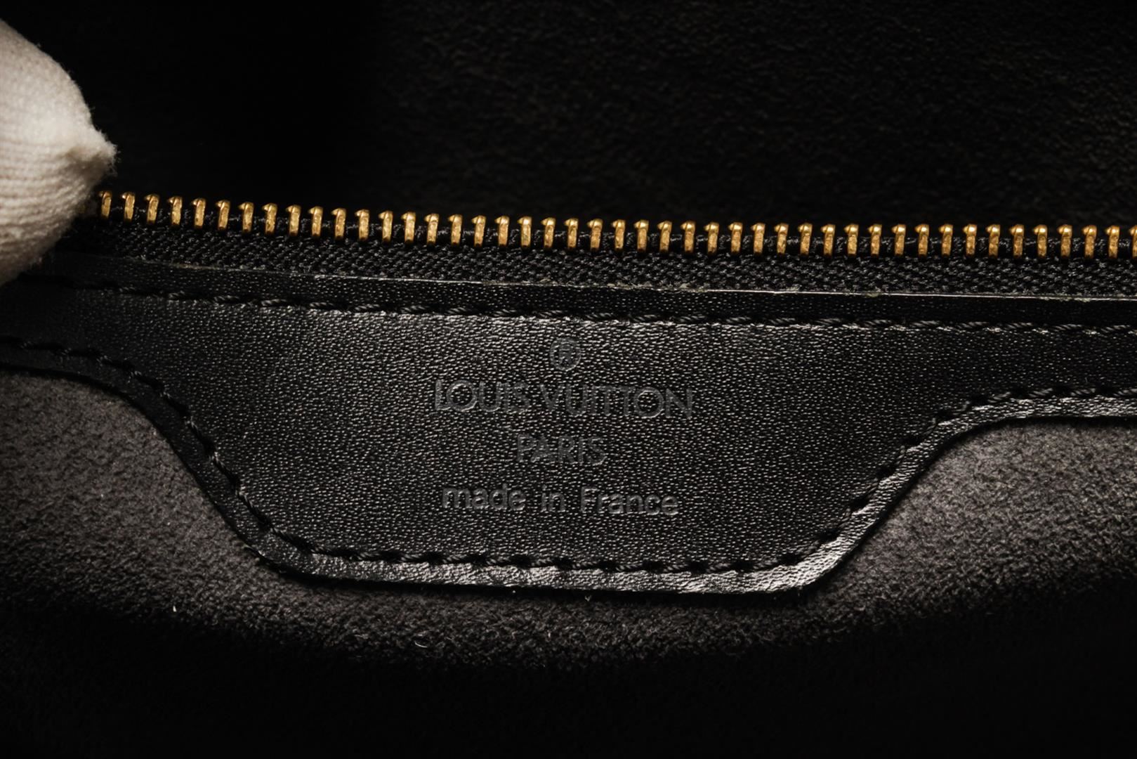 One Louis Vuitton Black Ã?pi Leather Saint Jacques Shoulder bag. Item is sold AS-IS. All available information is listed in the description and shown in the photo. Louis Vuitton Black ?pi Leather Saint Jacques Shoulder bag with silver-tone hardware, debossed logo to the front, top zip fastening two long top handles, internal logo patch, internal zip pocket, leather lining. Depth 3.9 in, Handle 4.7 in, Height 9.4 in, Width 9.1 in / Depth 10 cm, Handle 12 cm, Height 24 cm, Width 23 cm