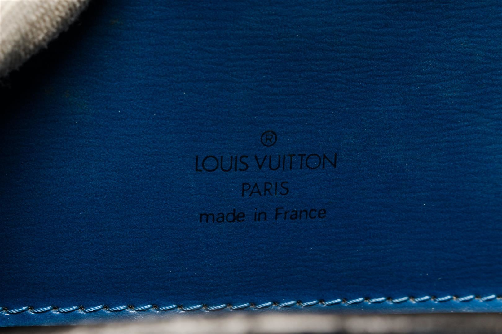 One Louis Vuitton Blue Epi Cluny. Item is sold AS-IS. All available information is listed in the description and shown in the photo. Louis Vuitton Blue Epi Cluny with adjustable shoulder strap, suede lining, interior pocket, gold tone hardware and turn lock closure