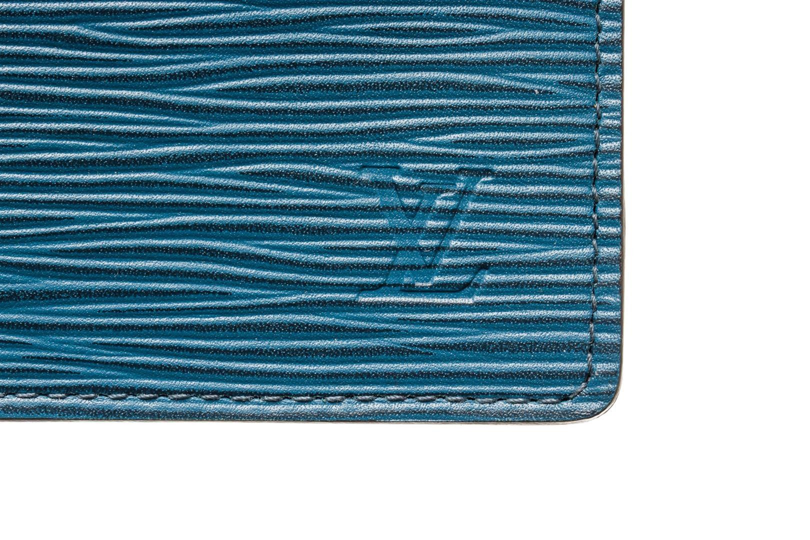 One Louis Vuitton Blue Epi Leather Marco Wallet. Item is sold AS-IS. All available information is listed in the description and shown in the photo. Louis Vuitton blue epi leather Marco Wallet with blue epi leather exterior, blue leather lining, dual interior pockets with card slots, and flap closure. "S.S." initials are stamped on the inside, Height: 4" Width: 4" Depth: 0.5" / 10.16 X 10.16 X 1.27 Cm