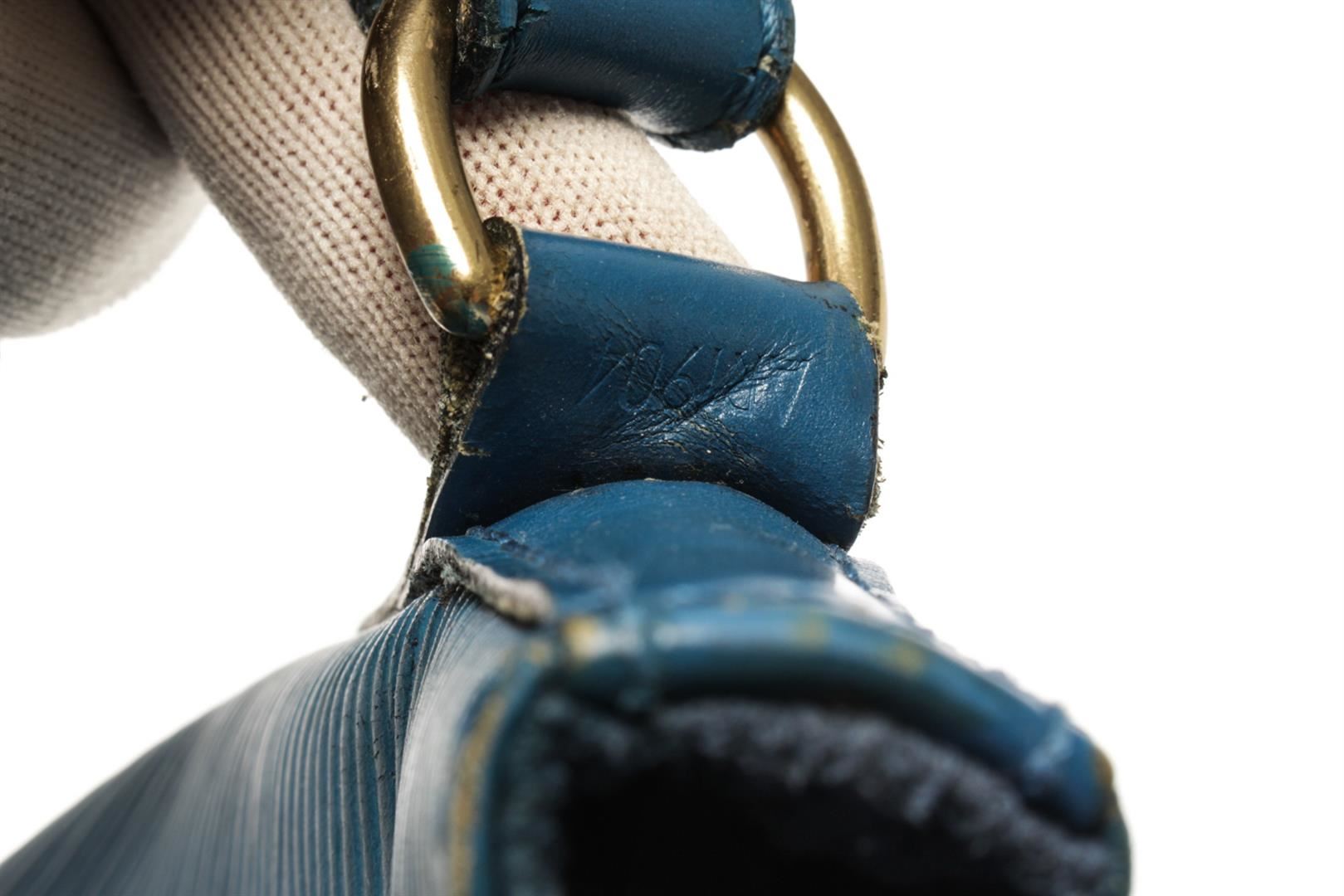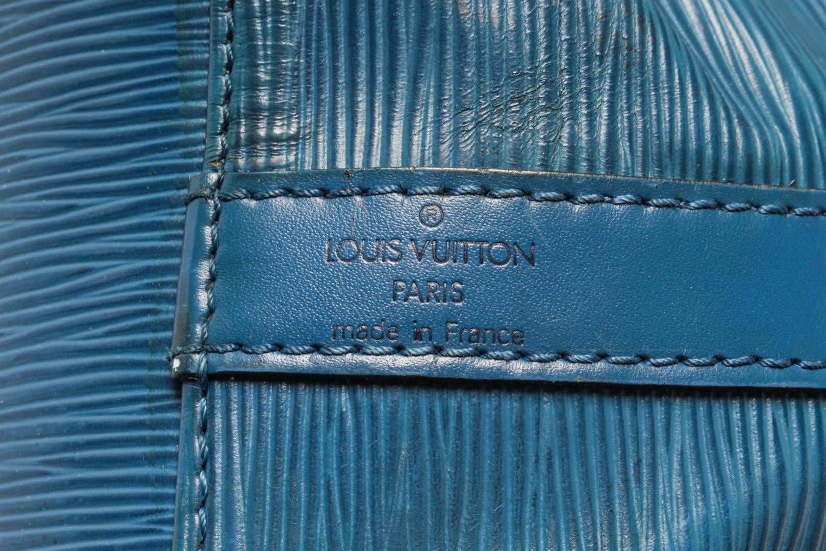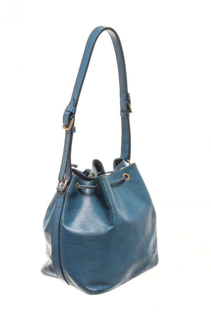 One Louis Vuitton Blue Epi Leather Noe GM Shoulder Bag. Item is sold AS-IS. All available information is listed in the description and shown in the photo. louis vuitton blue epi leather noe gm shoulder bag with the noe features an epi leather body, adjustable flat strap, open top with a drawstring closure, and alcantara lining. 13.4" L x 10.2" W x 7.1" D / 34.03 x 25.90 x 18.03 CM