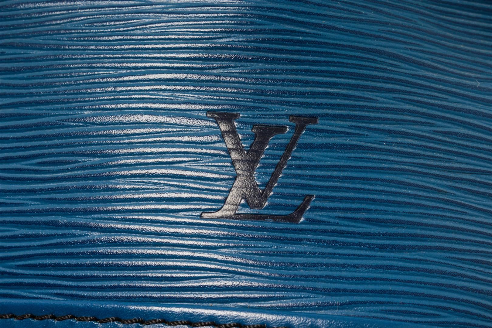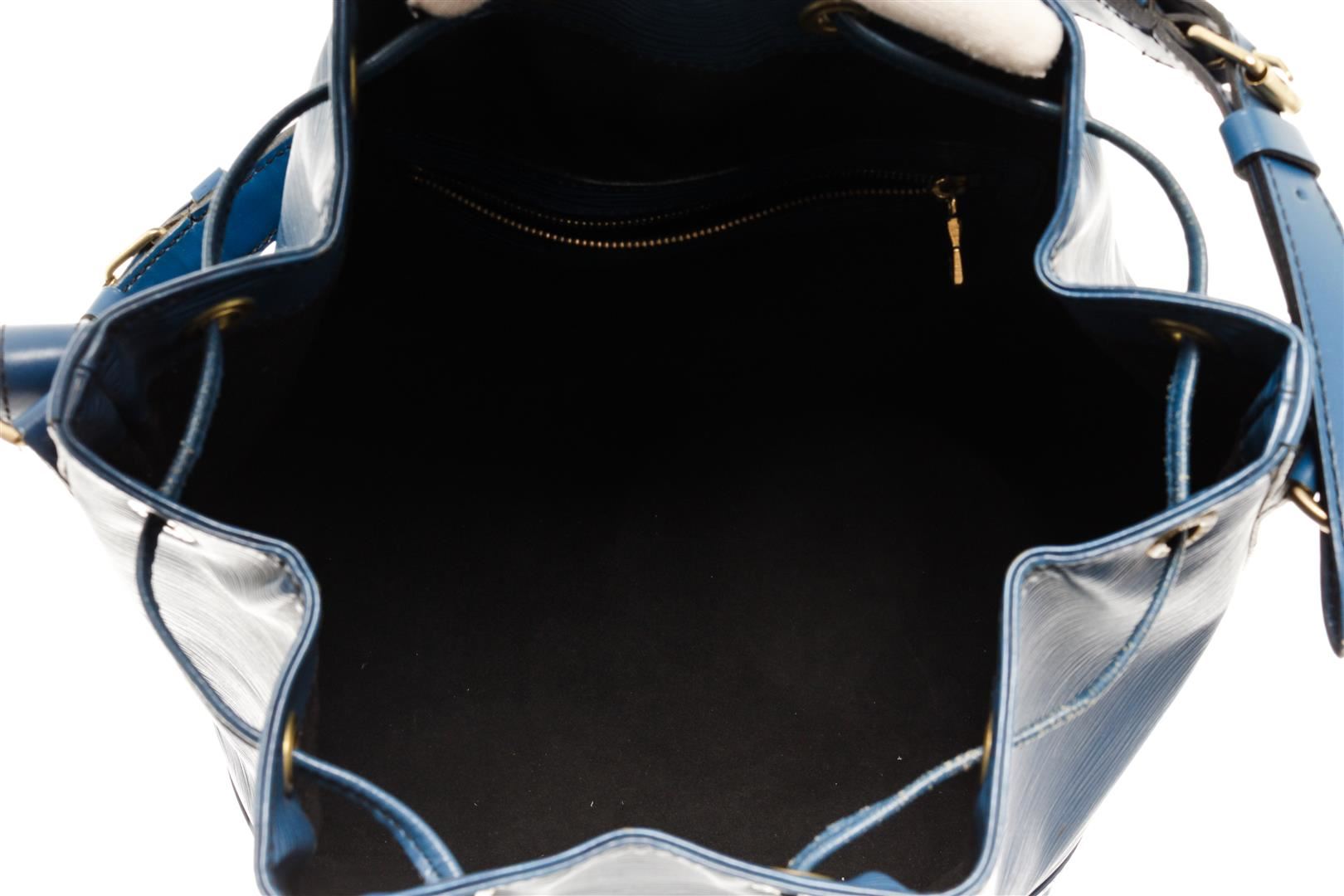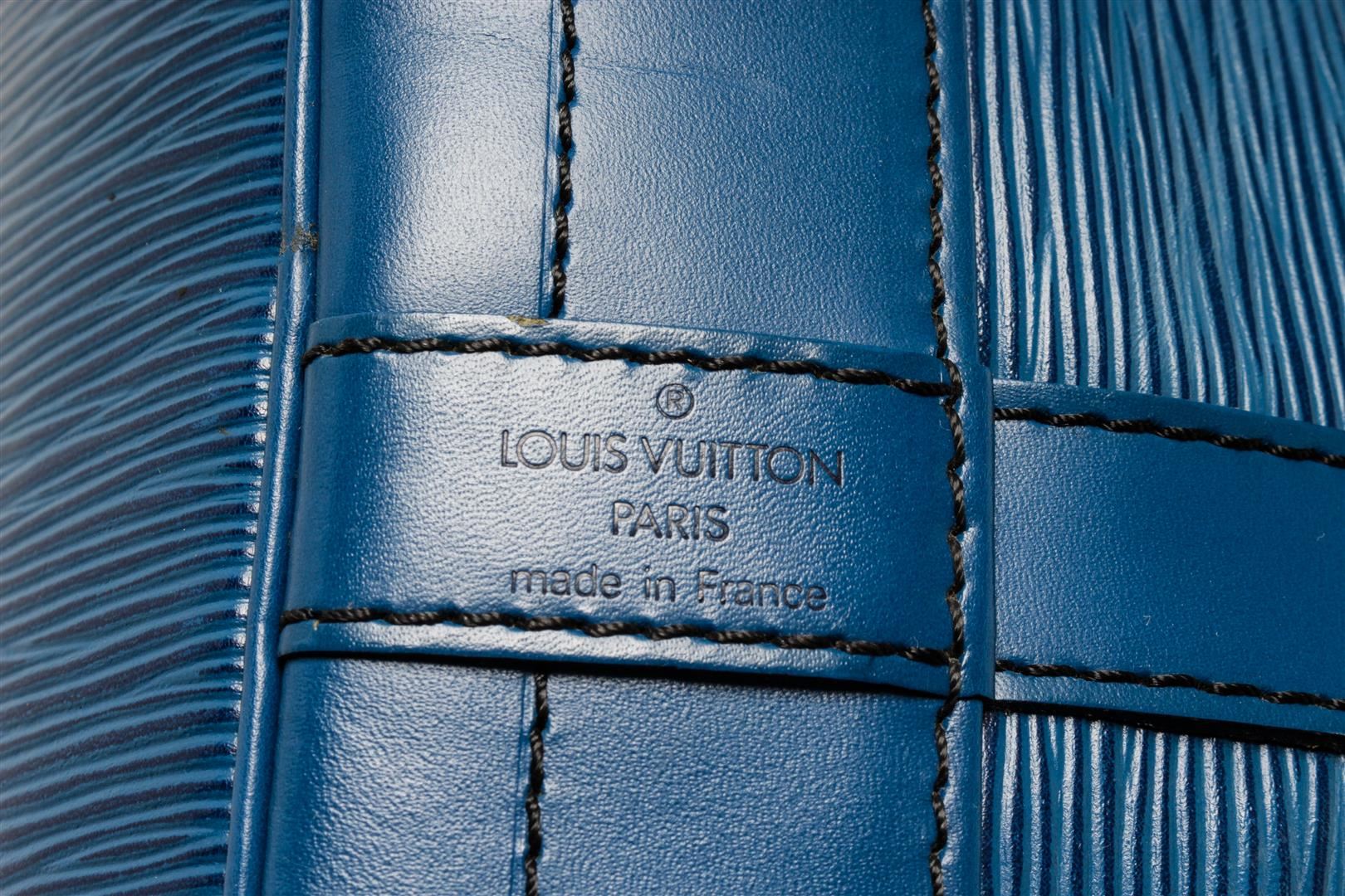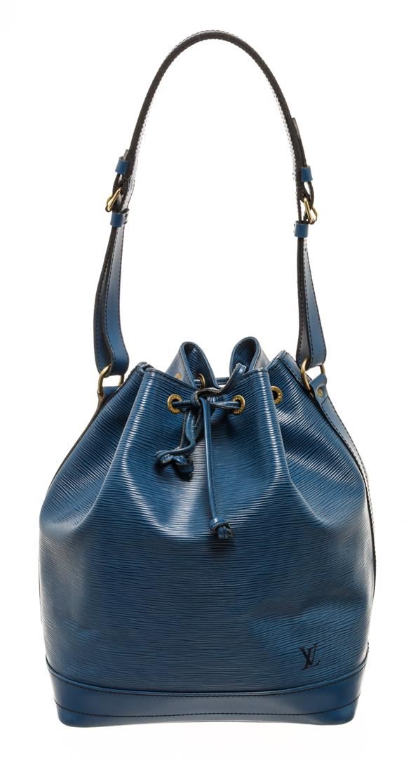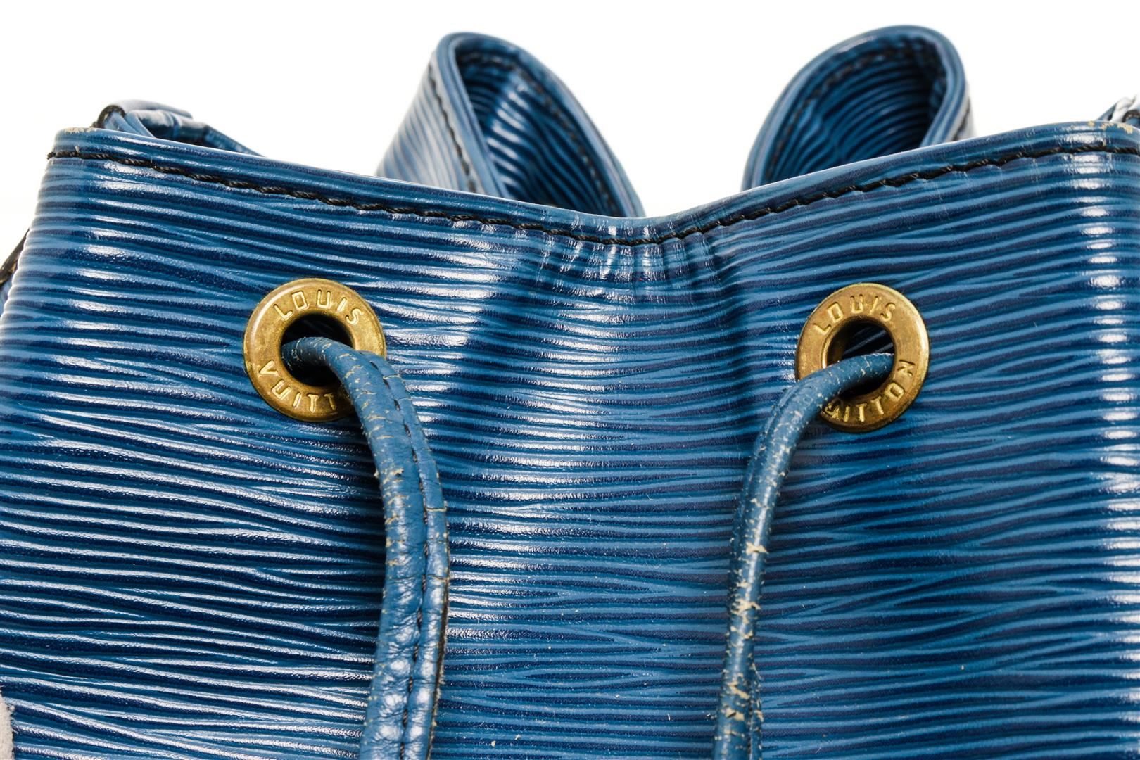 One Louis Vuitton Blue Epi Leather Noe Shoulder Bag. Item is sold AS-IS. All available information is listed in the description and shown in the photo. blue epi leather noe shoulder bag with an epi leather body, an adjustable flat strap, gold-tone hardware, an open top with a drawstring closure, and alcantara lining. Height: 12.8 in (32.52 cm), Width: 13.4 in (34.04 cm), Depth: 7.1 in (18.04 cm)