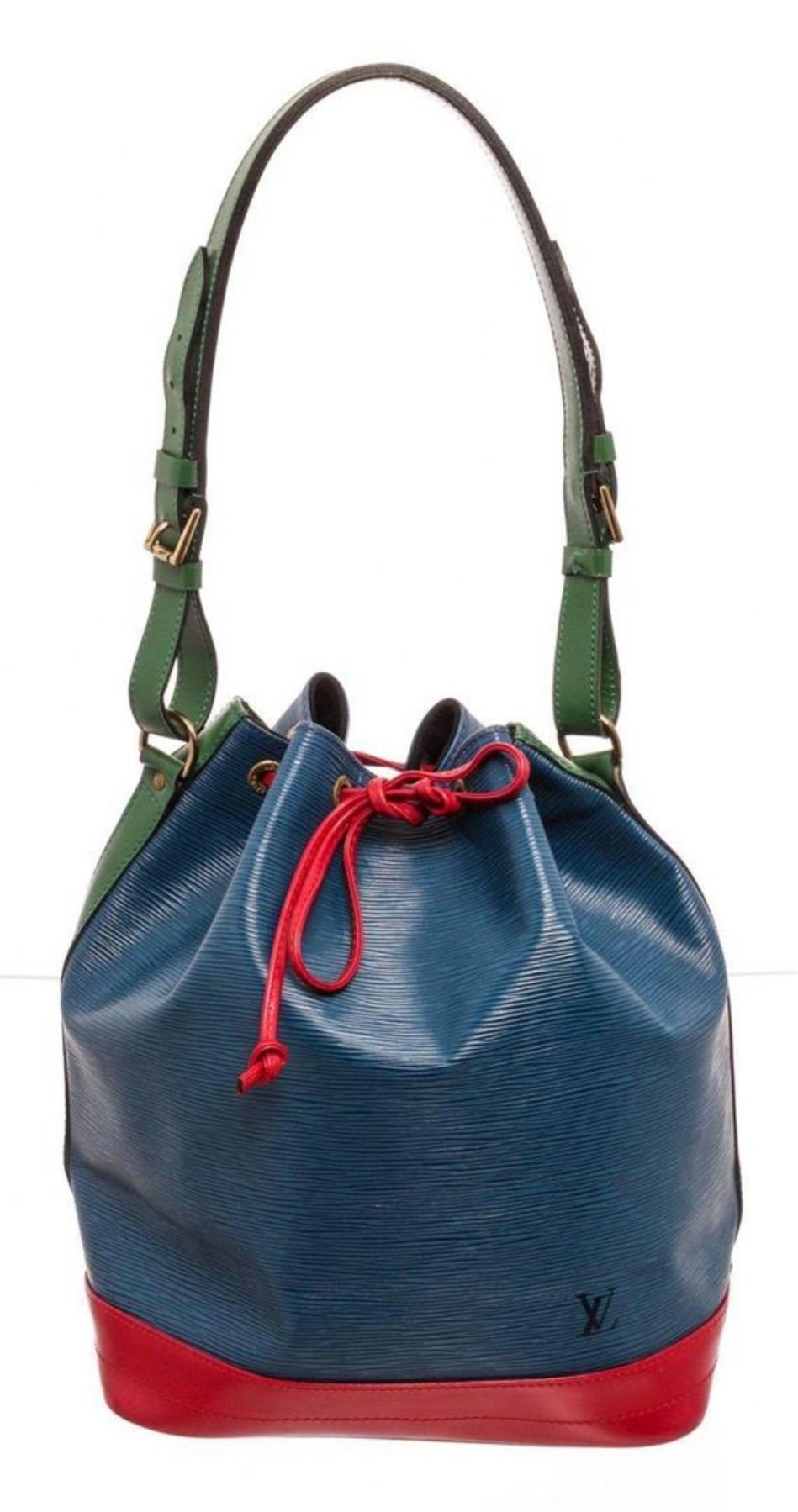 Louis Vuitton Blue Red Epi Leather Noe GM Bucket Bag. Louis Vuitton Blue Red Epi Leather Noe GM Bucket Bag with material epi leather, gold-tone hardware, trim tan vachetta leather, shoulder adjustable strap and drawstring closure. MEASUREMENTS: Lengt