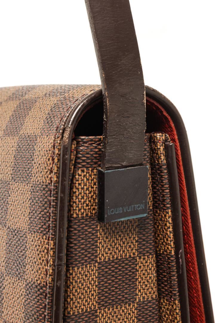 Louis Vuitton Brown Damier Ebène Canvas Tribeca Ron Shoulder Bag. All available information is listed in the description and shown in the photos. louis vuitton brown damier ebène canvas tribeca ron shoulder bag with gold-tone hardware, internal logo stamp internal zip-fastening pocket, main compartment, single shoulder strap leather trim. Depth 2.8 in, Handle 8.3 in, Height 6.7 in, Width 11.2 in / Depth 7 cm, Handle 21 cm, Height 17 cm, Width 28.5 cm