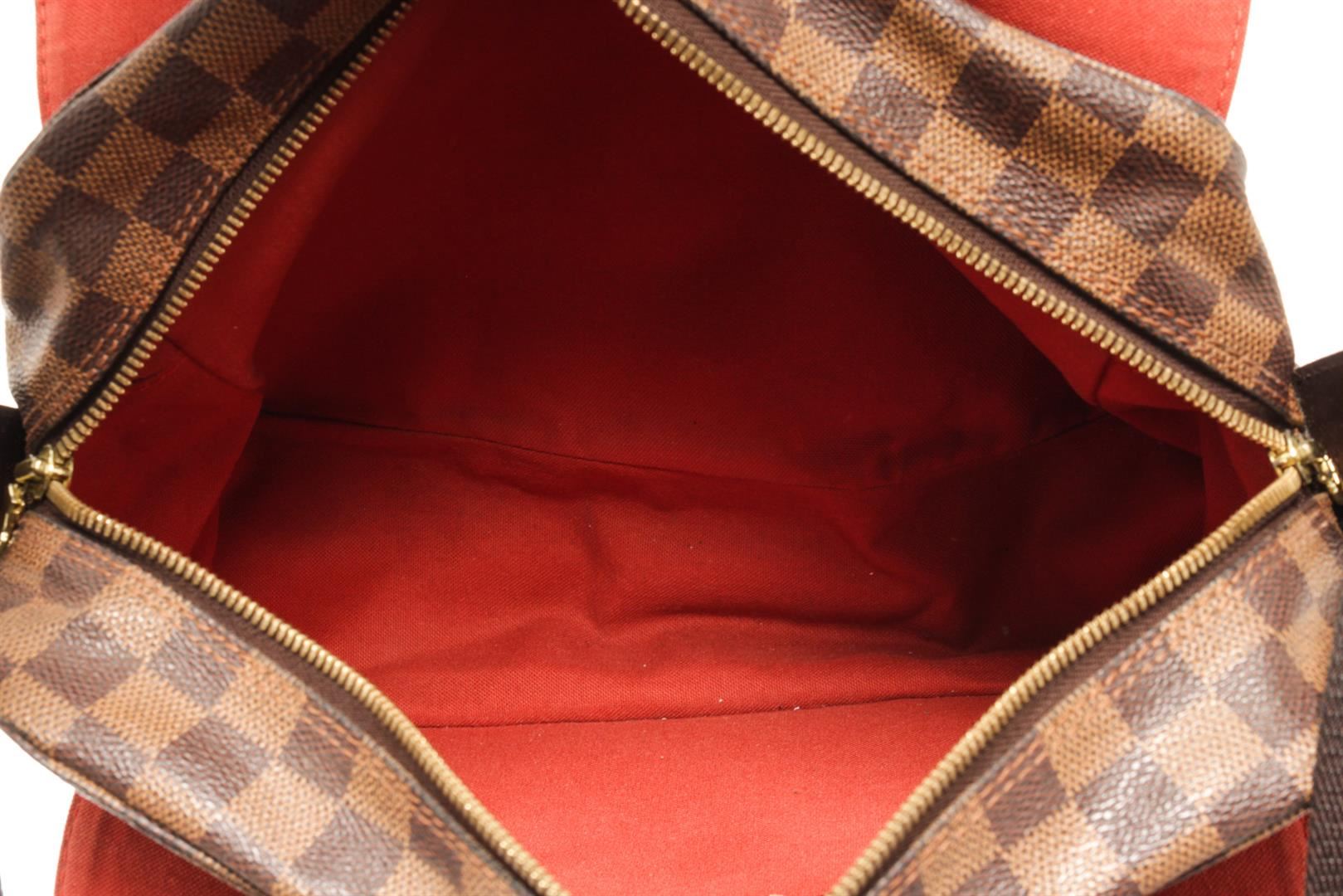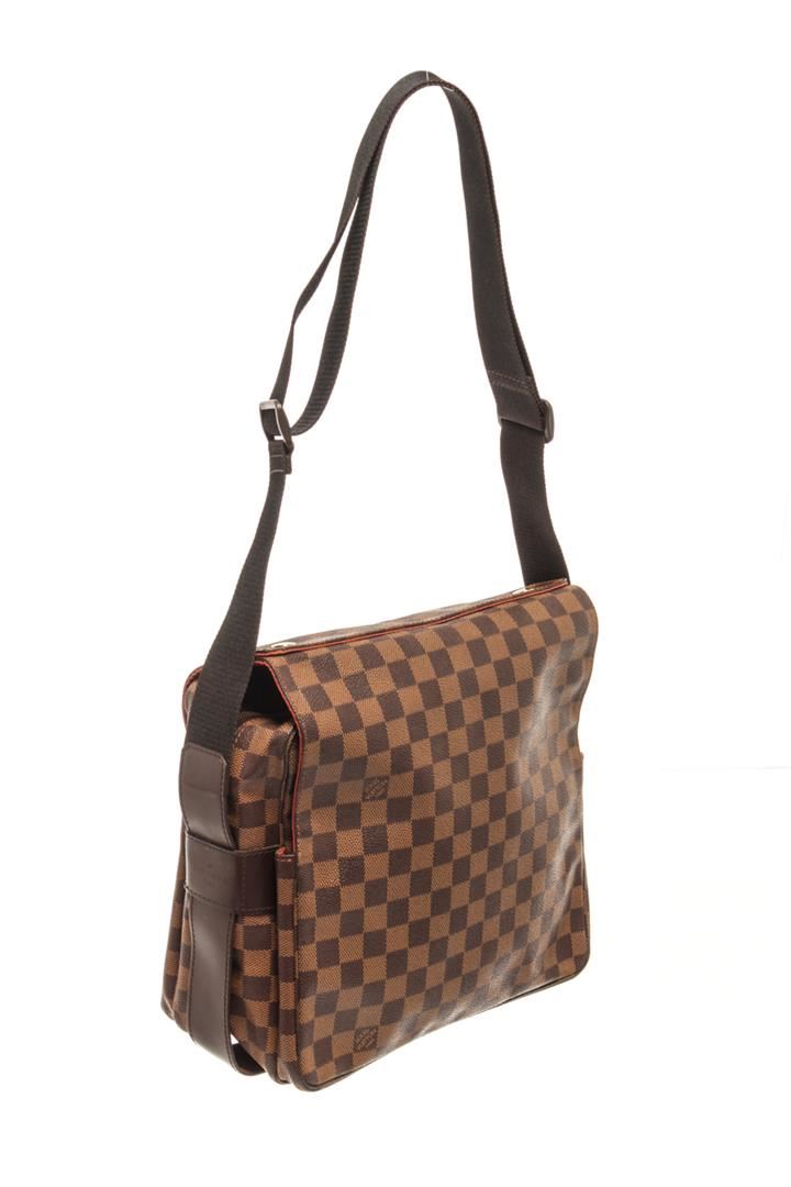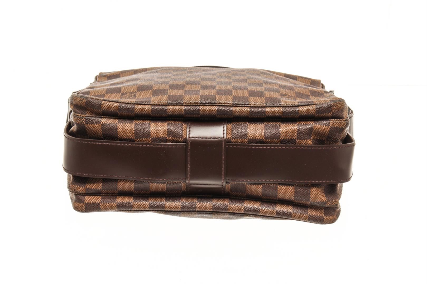 Louis Vuitton Brown Damier Ebene Naviglio Crossbody Bag. All available information is listed in the description and shown in the photos. louis vuitton brown damier ebene naviglio crossbody bag with the naviglio features a damier ebene canvas body, a flat strap, a top flap with snap closure, a top zip closure, and an interior slip pocket. Height: 10.2" Width: 11" Depth: 5.5", Handle Drop: / 25.90 x 27.94 x 13.97 Cm