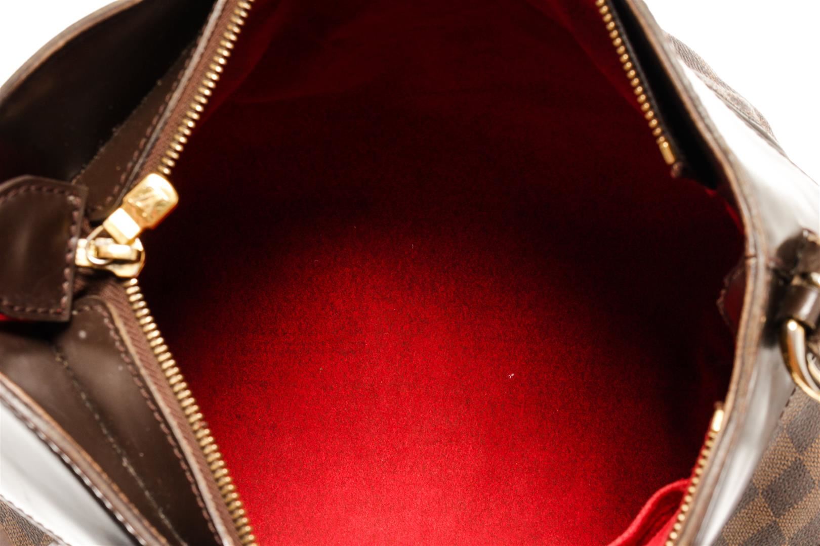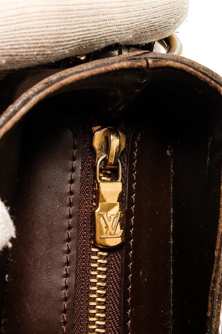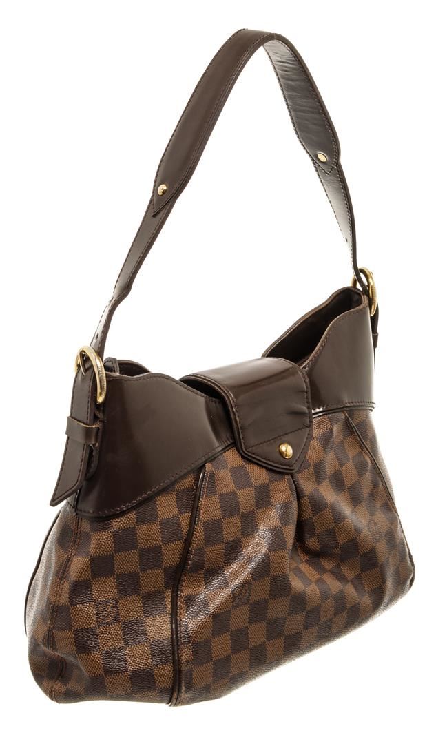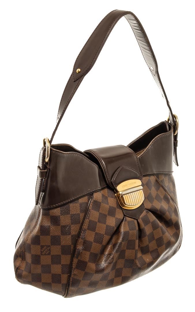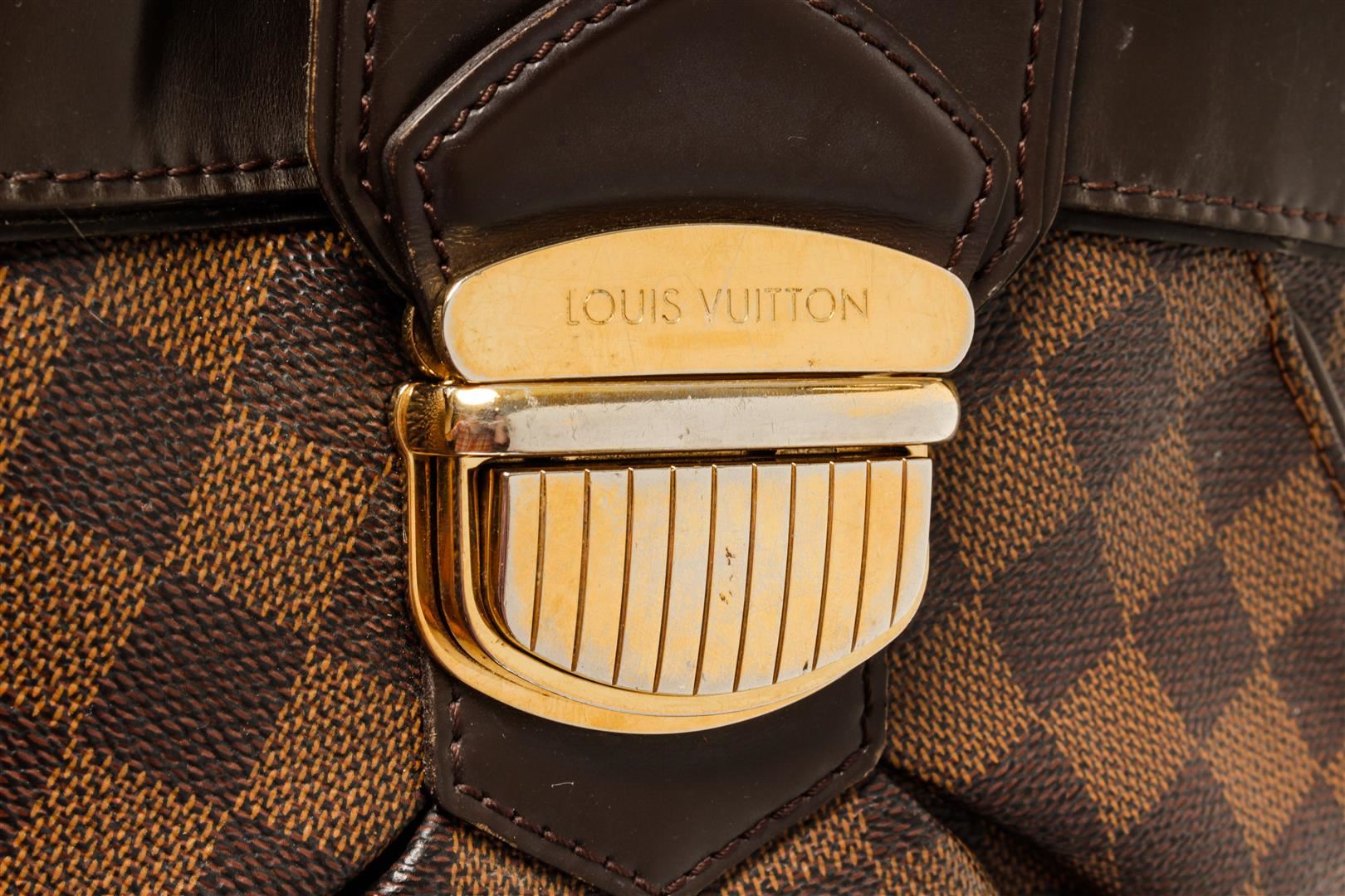 Louis Vuitton Brown Damier Ebene Sistina PM Shoulder Bag. All available information is listed in the description and shown in the photos. Louis Vuitton Brown Damier Ebene Sistina PM Shoulder Bag with damier ebene pattern, gold-tone hardware, flat handles, suede lining & dual interior pockets, push-lock closure at front Height: 17" Width: 15" Depth: 6.5" Handle Drop: 9"