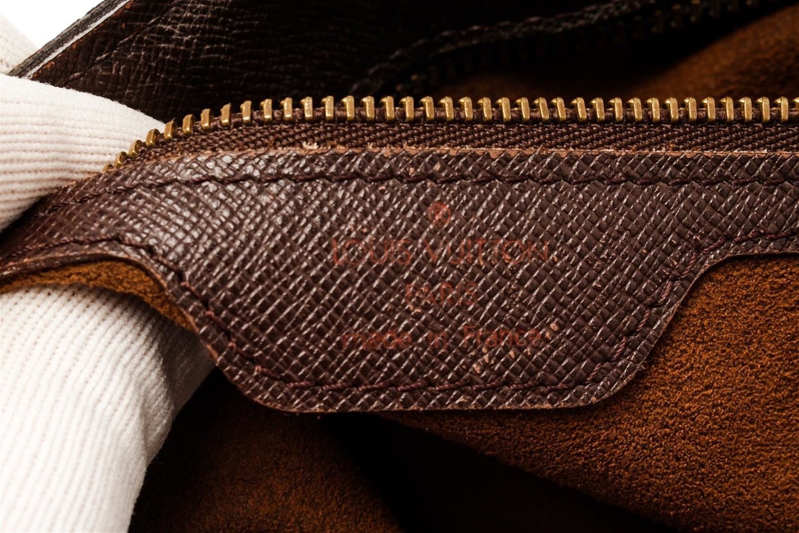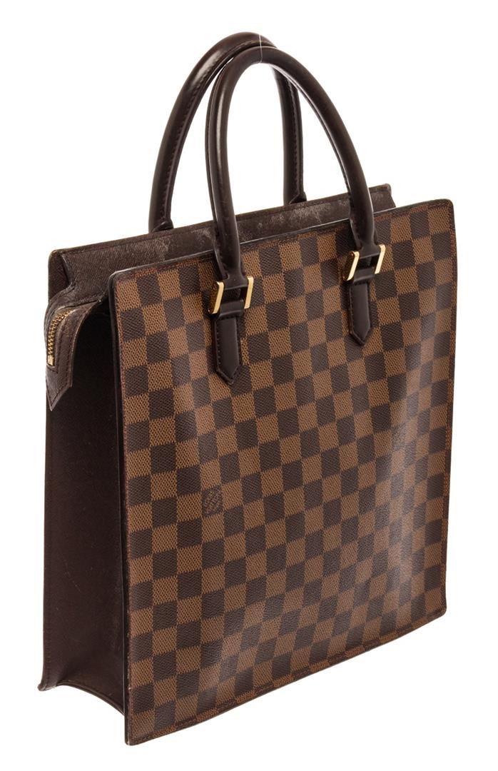 Louis Vuitton Brown Damier Ebene Venice Sac Plat Bag. All available information is listed in the description and shown in the photos. Louis Vuitton Brown Damier Ebene Venice Sac Plat Bag with the venice sac plat features a damier canvas body, damier ebene pattern, leather trim embellishment, rolled leather handles, a top zip closure, and alcantara lining & single interior pocket. 11.2" L x 11" W x 3.1" D, Drop: 3.7", 28.44 x 27.94 x 7.87 Cm