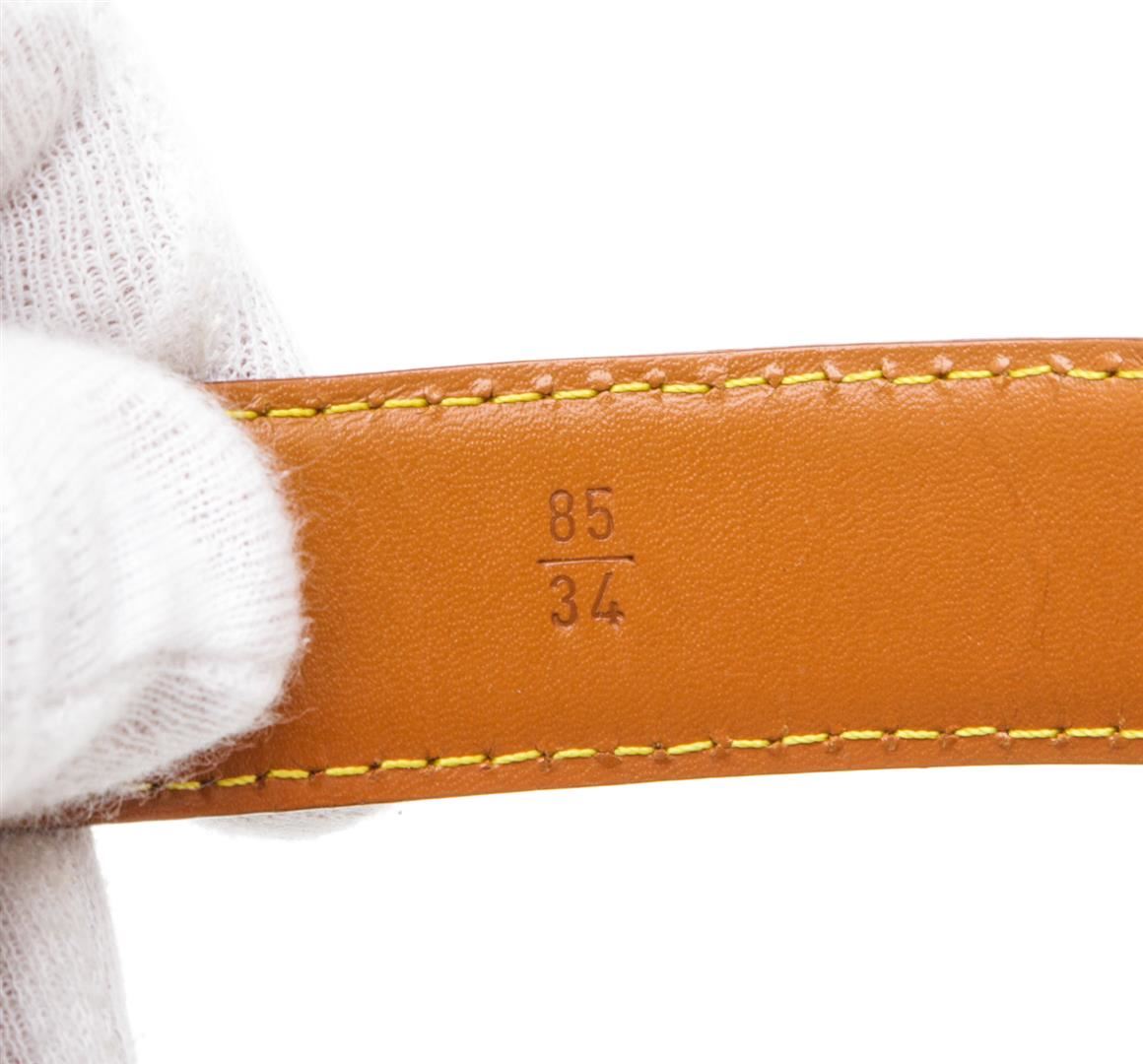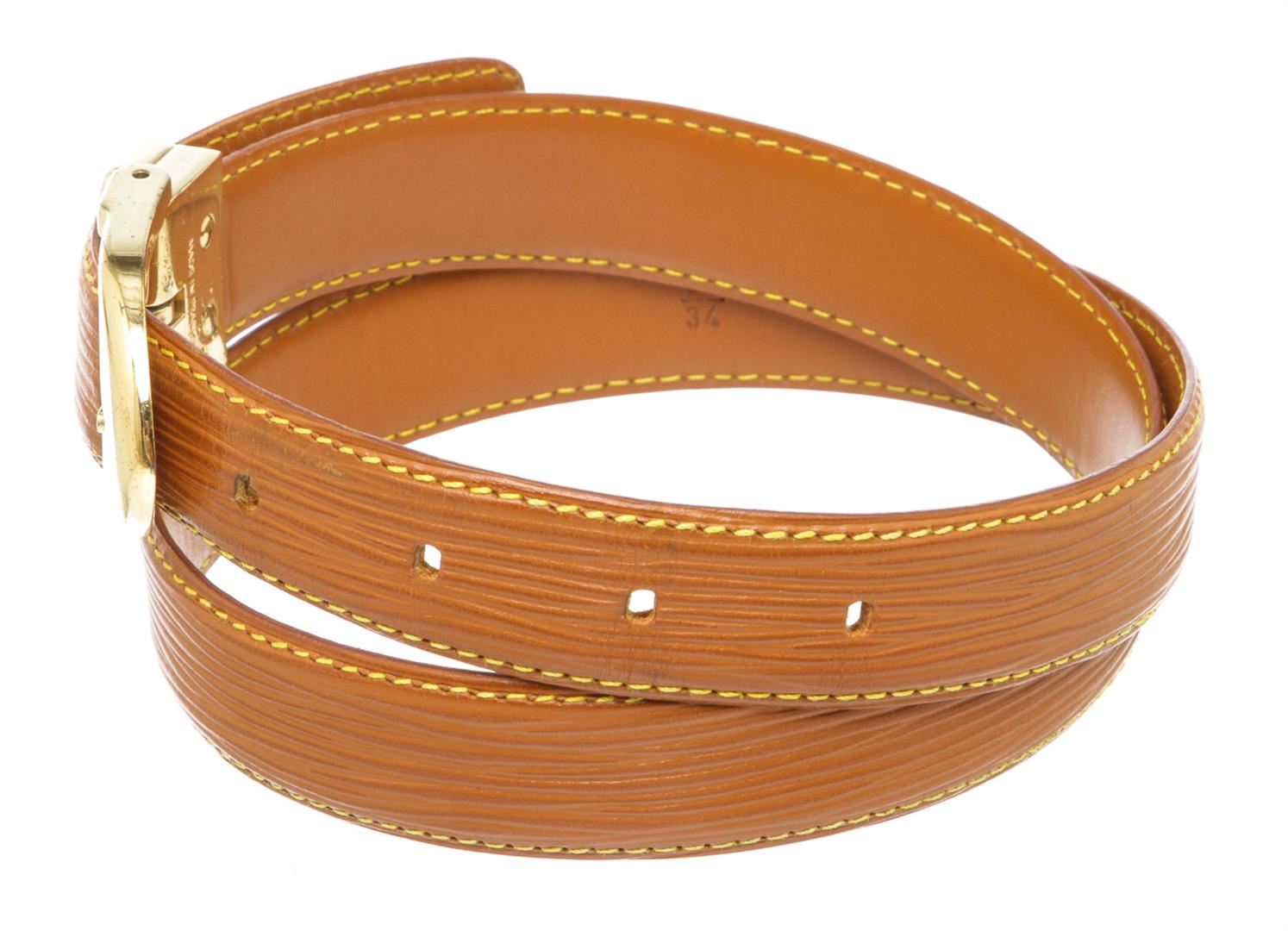 One Louis Vuitton Brown Epi Leather Skinny Classique Belt 85. Brown Epi leather Louis Vuitton Epi Skinny Classique belt with gold-tone buckle closure. Designer MKR