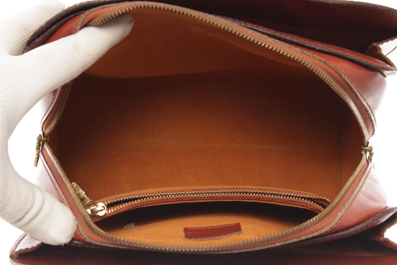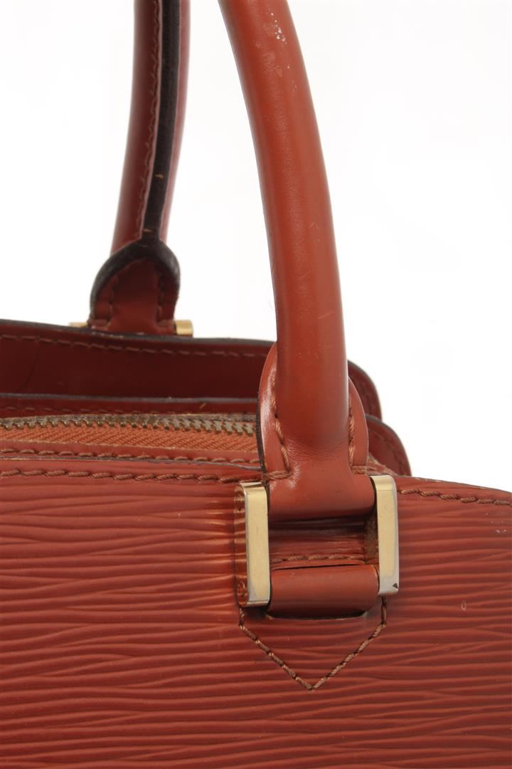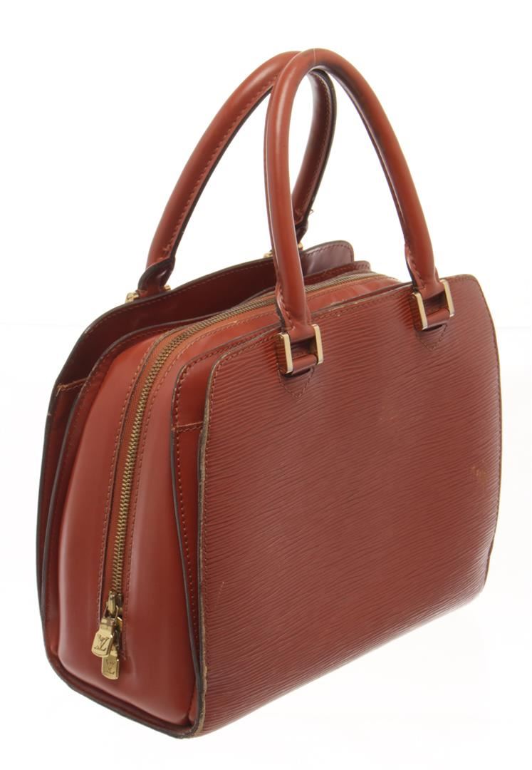 Louis Vuitton Brown Epi Pont Neuf Handbag. All available information is listed in the description and shown in the photos. Louis Vuitton Brown Epi Leather Pont Neuf Handbag with brown epi leather, rolled leather top handles, squared gold-tone brass links and hardware, and a wrap around zipper, This handbag opens to a brown alcantara microfiber interior with zipper and patch pockets. Height: 22.23 cm (8.75 in), Width: 24.13 cm (9.5 in), Depth: 10.8 cm (4.25 in)