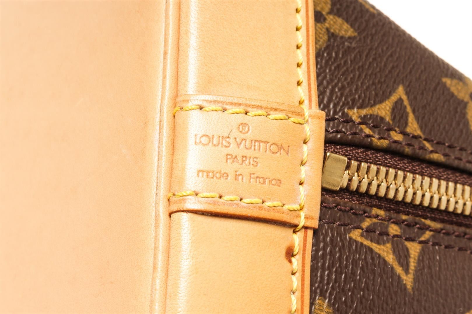One Louis Vuitton Brown Monogram Alma PM Bag. Item is sold AS-IS. All available information is listed in the description and shown in the photo. Louis Vuitton Brown Monogram Alma PM Bag with top handle, canvas lining, interior slip pockets, gold tone hardware, zipper closure. There is some wear on the bottom of the bag. Height: 8.9" Width: 12.2" Depth: 5.9" , Handle Drop: 3.1" / 22.60 x 30.98 x 14.98 Cm