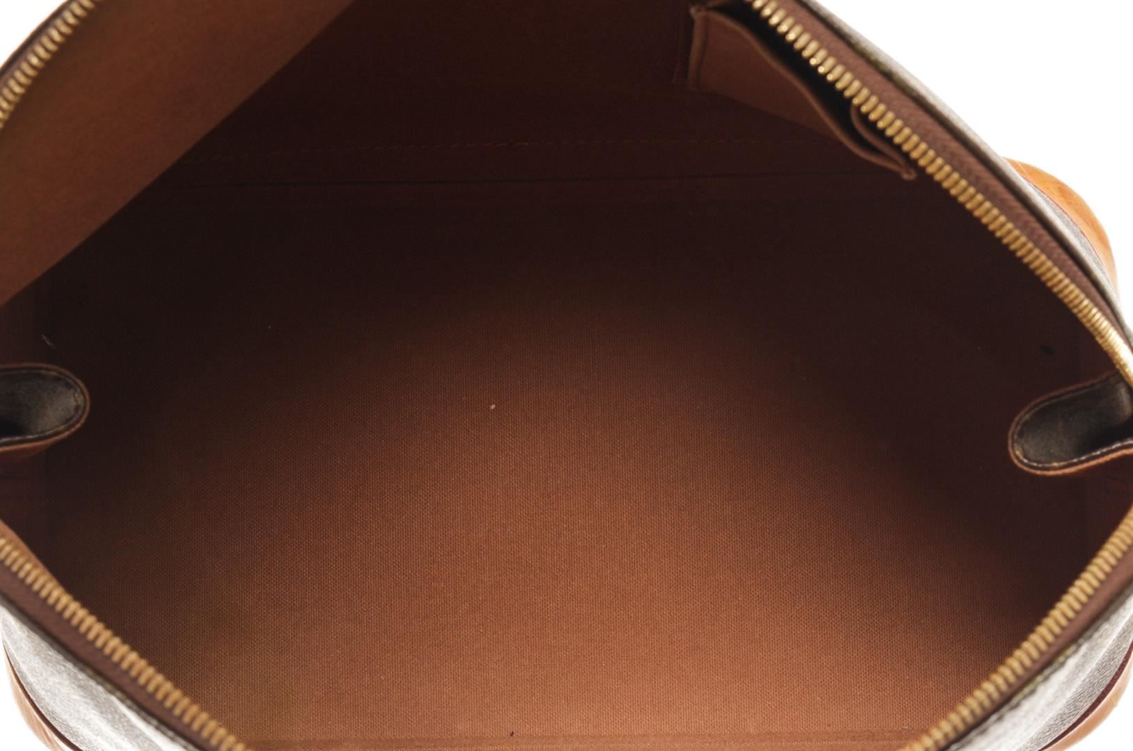 One Louis Vuitton Brown Monogram Alma PM Bag. Item is sold AS-IS. All available information is listed in the description and shown in the photo. Louis Vuitton Brown Monogram Alma PM Bag with top handle, canvas lining, interior slip pockets, gold tone hardware, zipper closure. Height: 8.9" Width: 12.6" Depth: 5.9", Handle Drop: 3.1" / 22.60 x 32 x 14.98 Cm