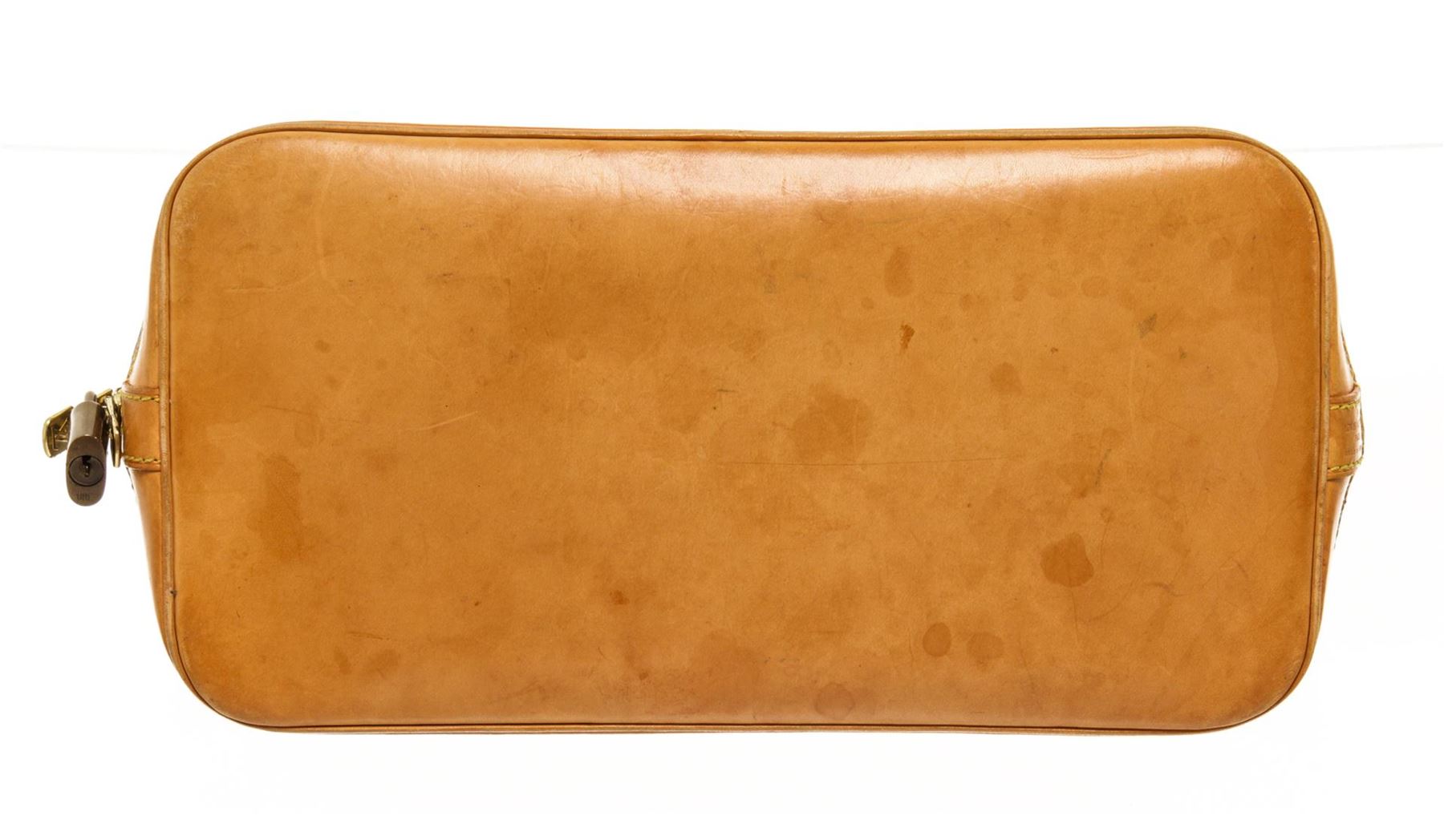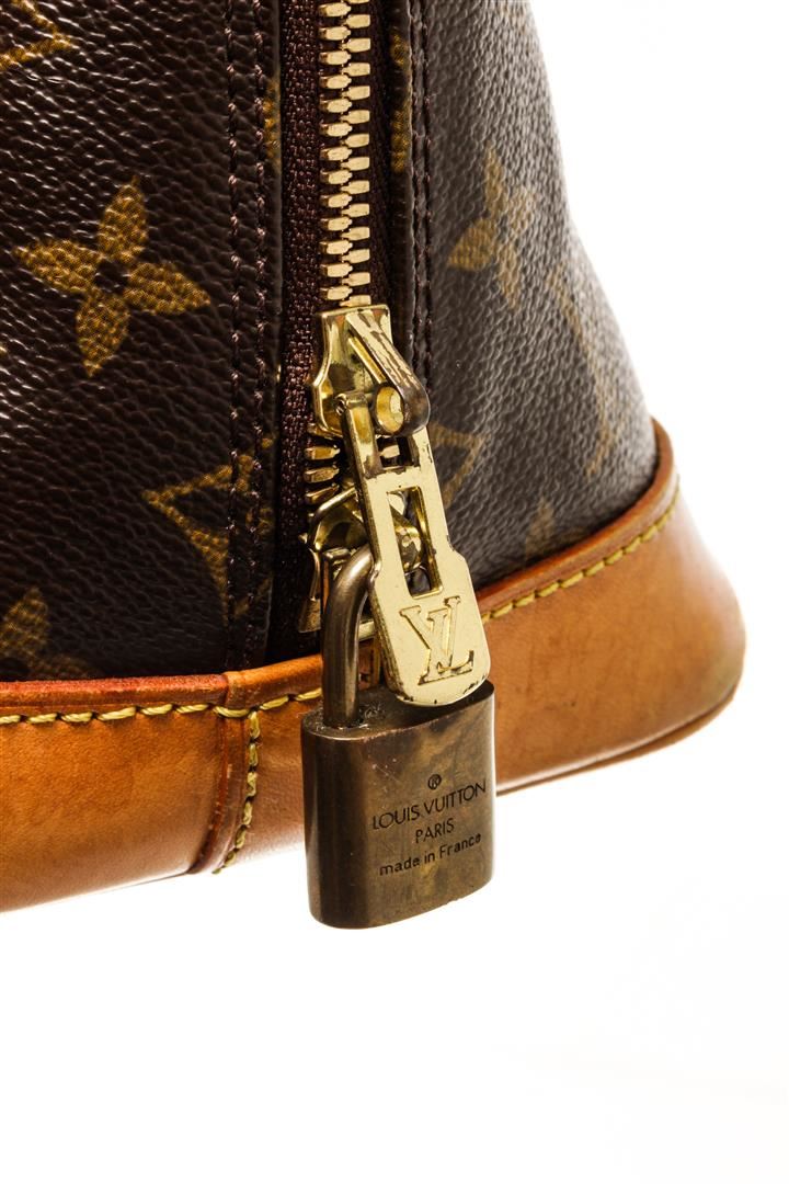 One Louis Vuitton Brown Monogram Canvas Alma PM Satchel Bag. Item is sold AS-IS. All available information is listed in the description and shown in the photo. louis vuitton brown monogram canvas alma pm satchel bag with brown louis vuitton monogram alma pm bag with the alma pm a monogram canvas body, rolled leather handles, a leather bottom, a top zip closure, and an interior slip pocket. 8.9" L x 11.4" W x 5.9" D / 22.60 x 28.95 x 14.98 CM