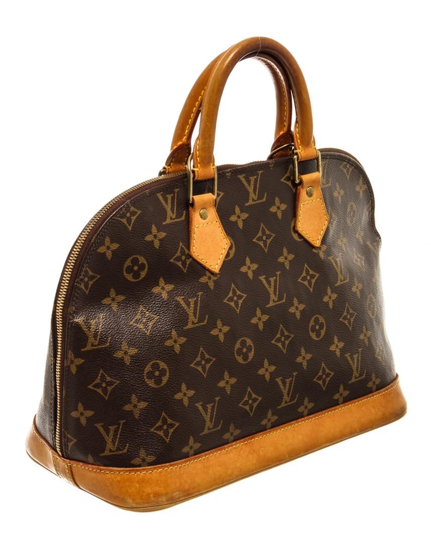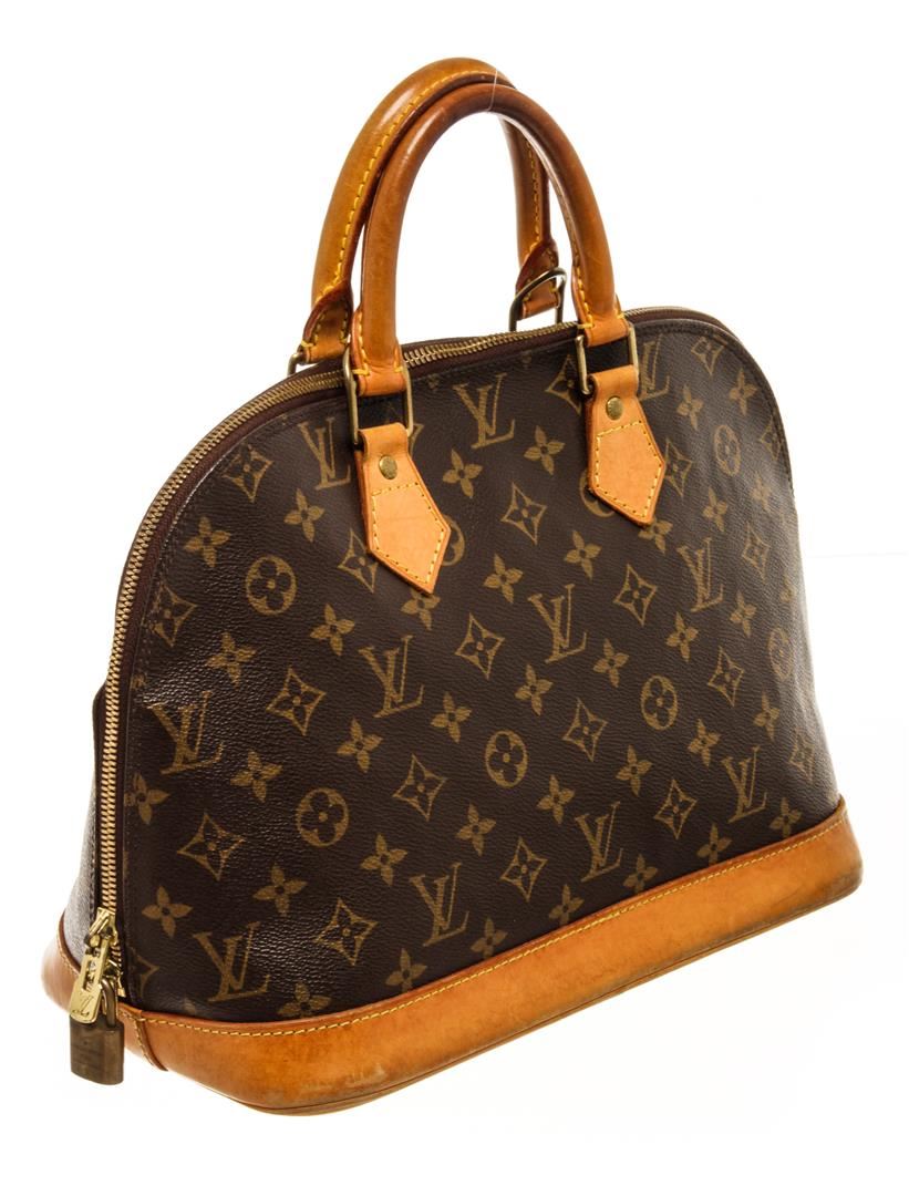 One Louis Vuitton Brown Monogram Canvas Alma PM Satchel Bag. Item is sold AS-IS. All available information is listed in the description and shown in the photo. louis vuitton brown monogram canvas alma pm satchel bag with brown louis vuitton monogram alma pm bag with the alma pm a monogram canvas body, rolled leather handles, a leather bottom, a top zip closure, and an interior slip pocket. 8.9" L x 11.4" W x 5.9" D / 22.60 x 28.95 x 14.98 CM