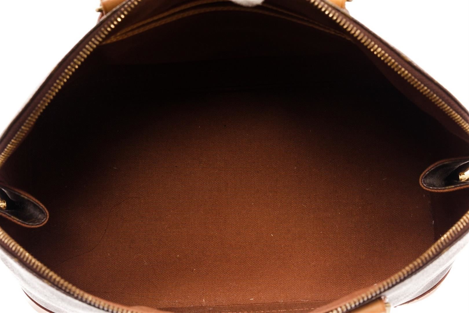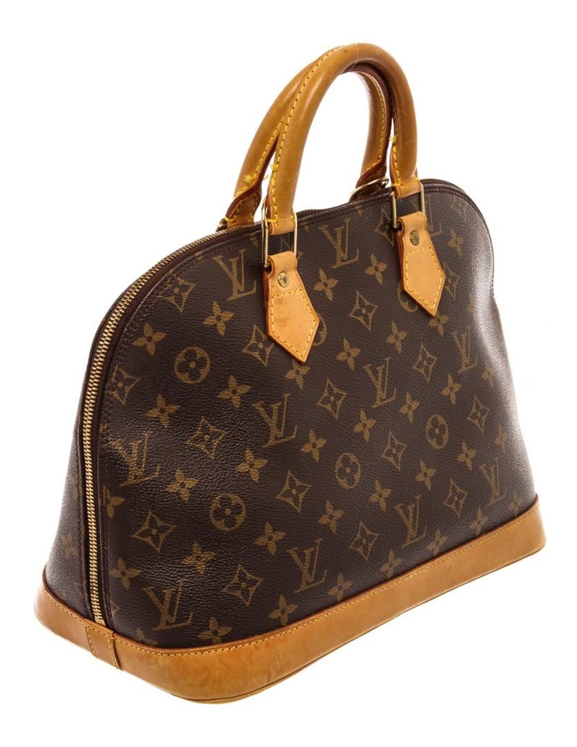 Louis Vuitton Brown Monogram Canvas Alma PM Satchel Bag. All available information is listed in the description and shown in the photos. Louis Vuitton Brown Monogram Canvas Alma PM Satchel Bag with brass hardware, leather trim, dual rolled handles, leather trim embellishment, canvas lining & dual interior pockets, zip closure at top. Height: 9" Width: 12" Depth: 7", Handle Drop: 3.75" / 22.86 x 30.48 x 17.78 Cm