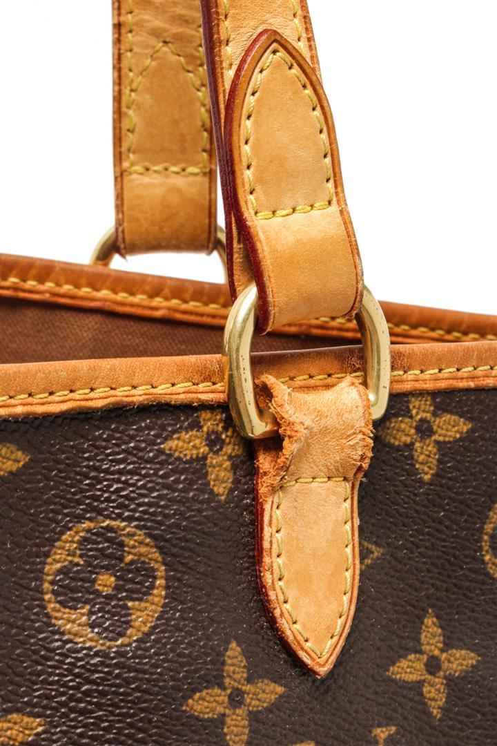 One Louis Vuitton Brown Monogram Canvas Batignolles Horizontal Shoulder Bag. Item is sold AS-IS. All available information is listed in the description and shown in the photo. Louis Vuitton Brown Monogram Canvas Batignolles Horizontal Shoulder Bag with shoulder strap, canvas lining, interior pocket, gold tone hardware, interior pocket. There is some wear on the gold hardware connected to the strap, a tear on the inside leather loop. Please refer to photos. Depth 5.5 in, Handle 9.8 in, Height 11.8 in, Width 12.6 in / Depth 14 cm, Handle 25 cm, Height 30 cm, Width 32 cm