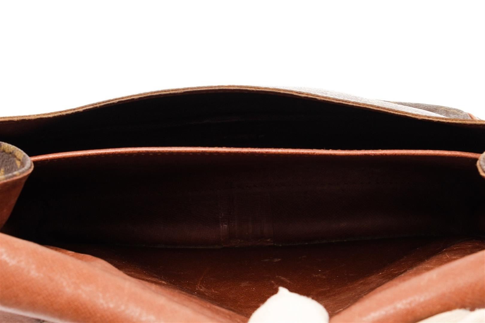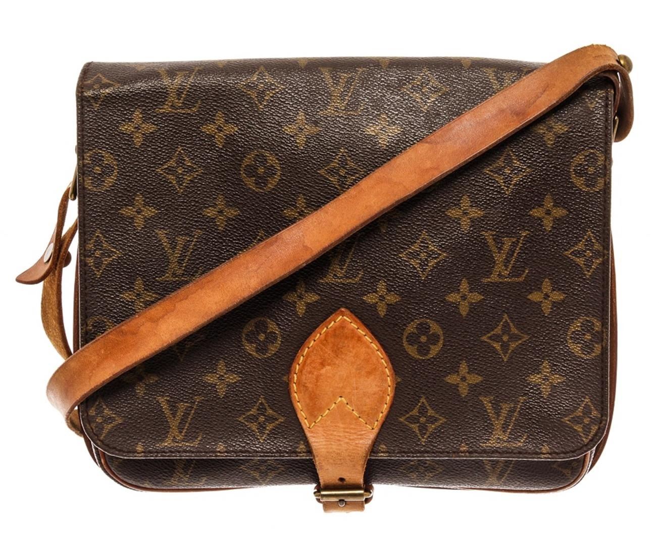 Louis Vuitton Brown Monogram Canvas Cartouchiere GM Messenger Bag. All available information is listed in the description and shown in the photos. Louis Vuitton Brown Monogram Canvas Cartouchiere GM Messenger Bag with brown coated canvas, brass hardware, leather trim, single adjustable shoulder strap, leather trim embellishment, leather lining, buckle closure at front. Height: 9.25" Width: 9.75" Depth: 3.25", Shoulder Strap Drop: 18.5-20.75" / 23.49 x 24.76 x 8.25 Cm