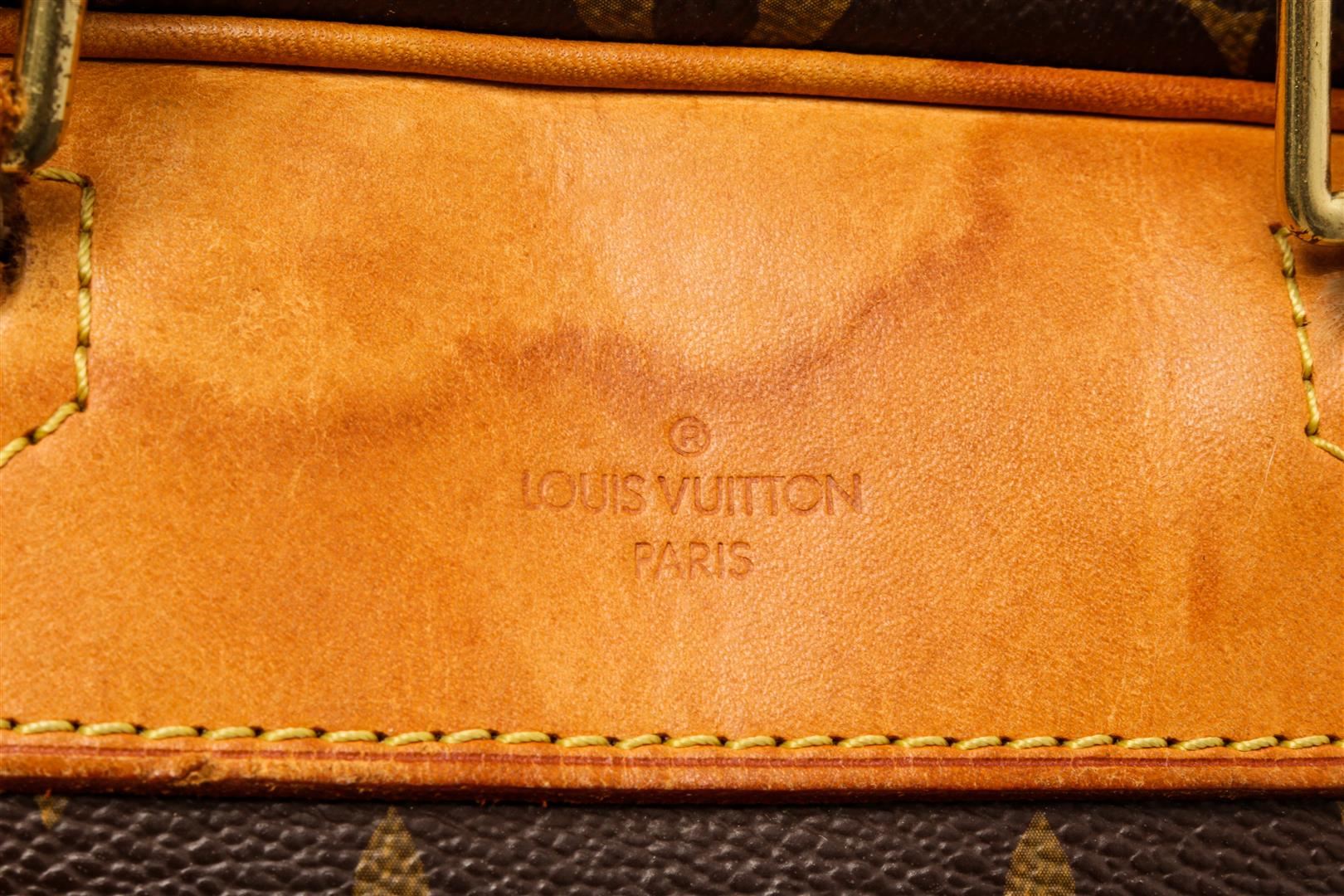 Louis Vuitton Brown Monogram Canvas Deauville Satchel Bag. All available information is listed in the description and shown in the photos. Louis Vuitton Brown Monogram Canvas Deauville Satchel Bag with gold-tone hardware, monogram canvas, leather tag, debossed logo, two-way zip fastening, two rounded top handles, front patch pocket, internal patch pockets, internal logo patch. Depth 5.9 in, Handle 4.3 in, Height 11.4 in, Width 13.8 in / Depth 15 cm, Handle 11 cm, Height 29 cm, Width 35 cm