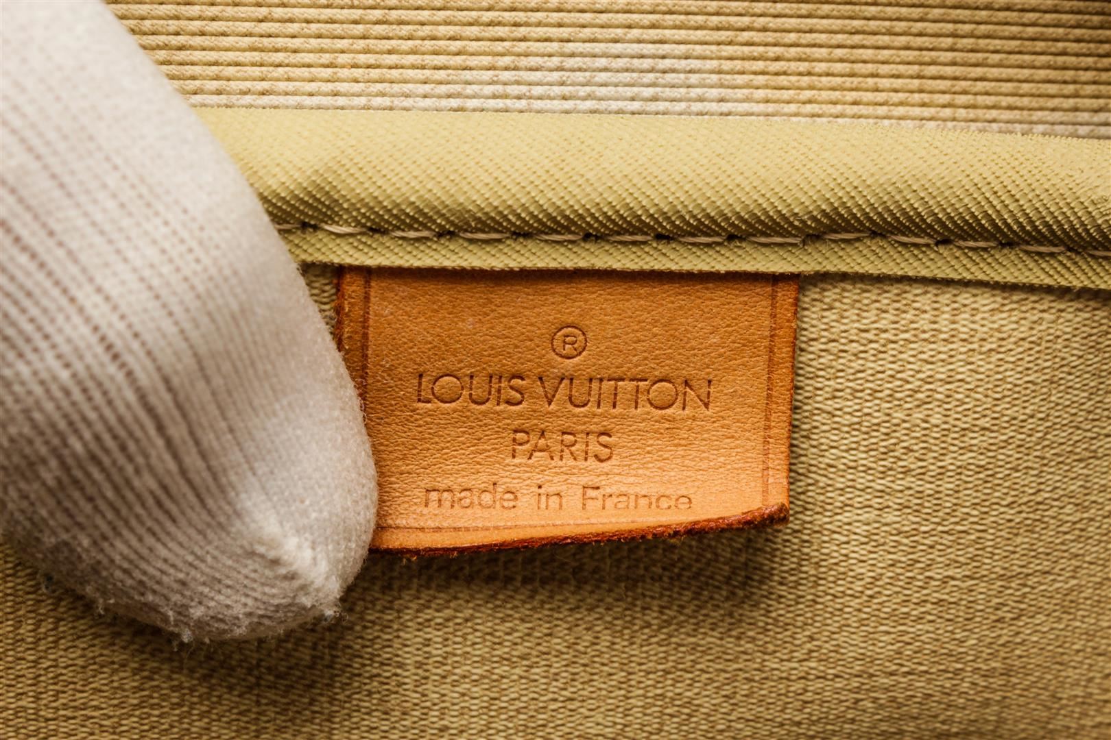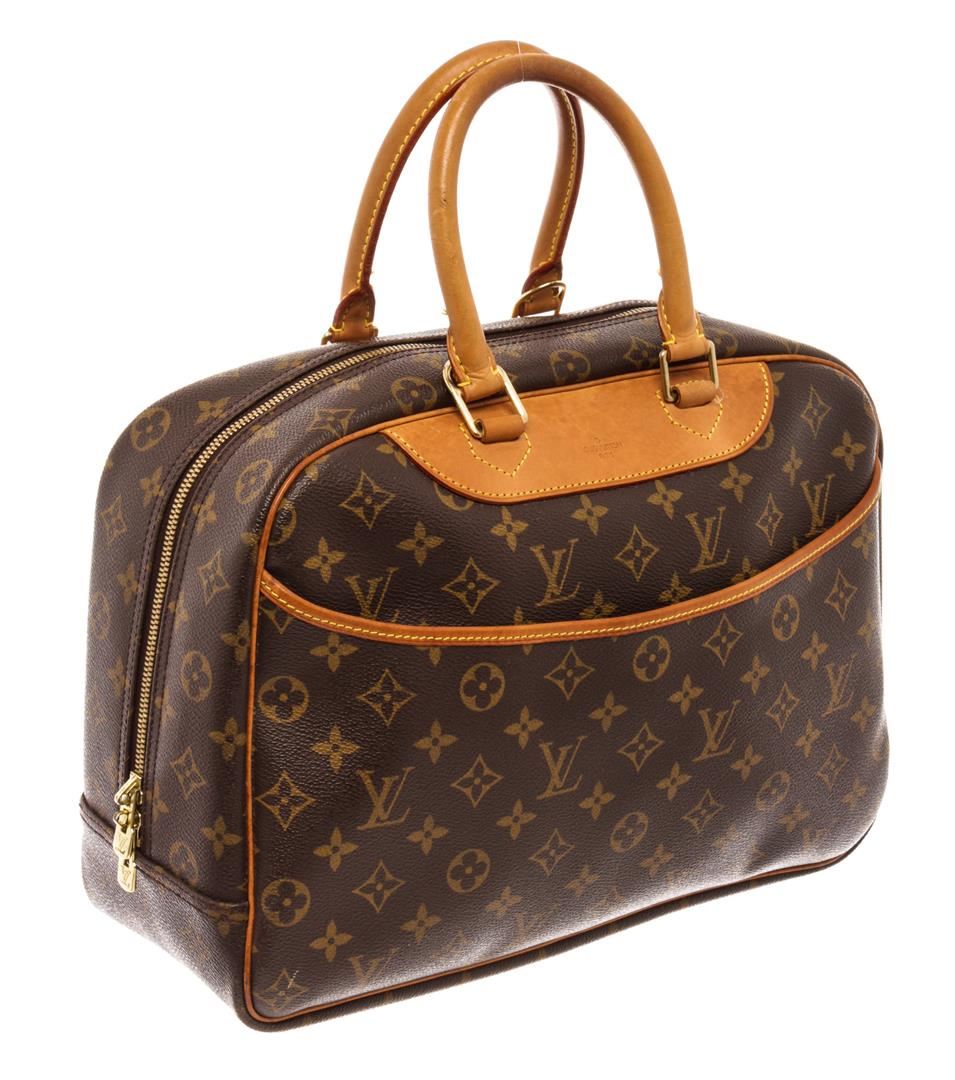 Louis Vuitton Brown Monogram Canvas Deauville Satchel Bag. All available information is listed in the description and shown in the photos. Louis Vuitton Brown Monogram Canvas Deauville Satchel Bag with gold-tone hardware, monogram canvas, leather tag, debossed logo, two-way zip fastening, two rounded top handles, front patch pocket, internal patch pockets, internal logo patch. Depth 5.9 in, Handle 4.3 in, Height 11.4 in, Width 13.8 in / Depth 15 cm, Handle 11 cm, Height 29 cm, Width 35 cm