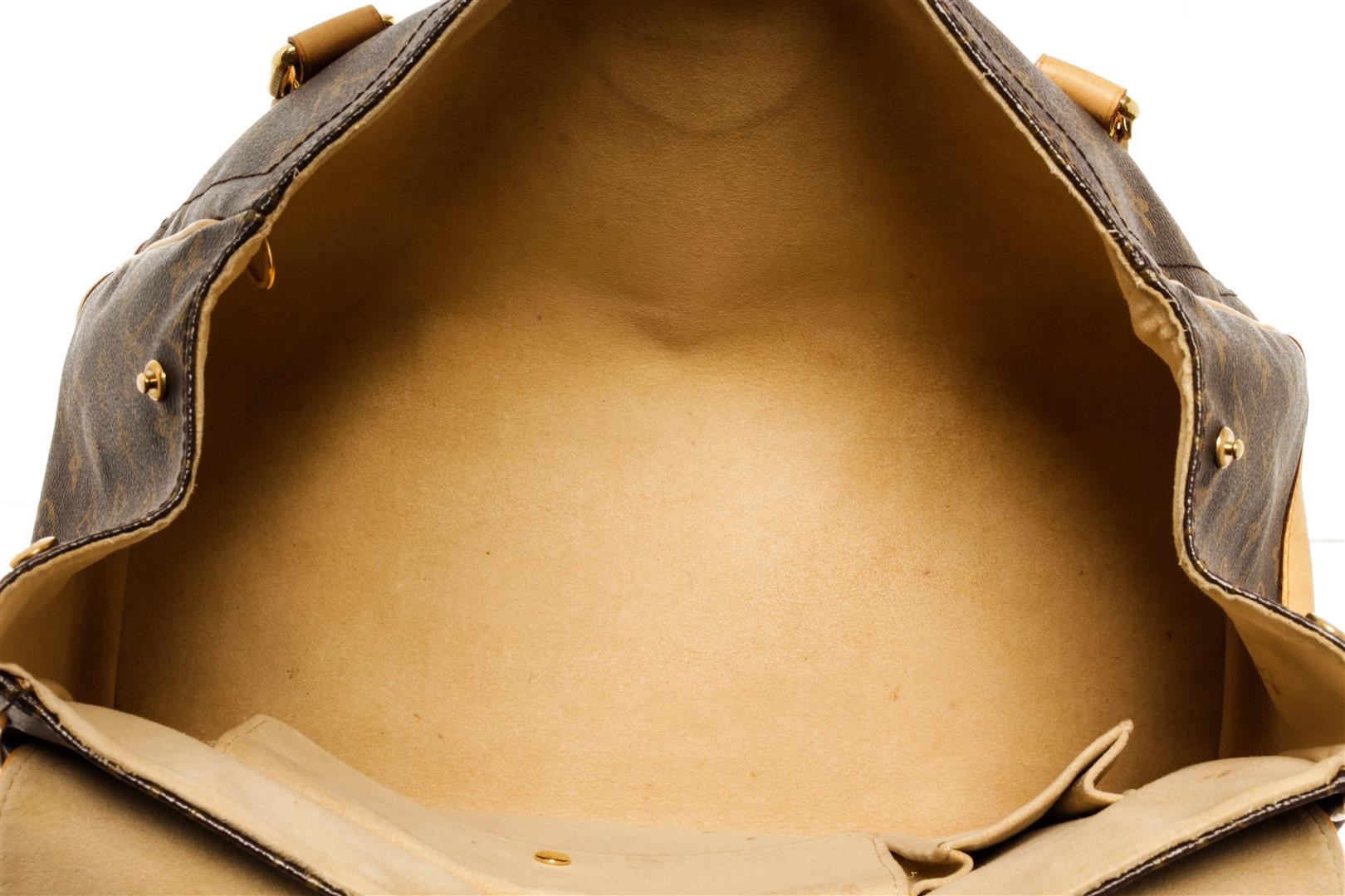 One Louis Vuitton Brown Monogram Canvas Leather Beverly GM Shoulder Bag. Item is sold AS-IS. All available information is listed in the description and shown in the photo. Brown and tan monogram coated canvas Louis Vuitton Beverly GM with gold-tone hardware, tan vachetta leather accents, dual flat shoulder straps, exterior pocket at back, beige Alcantara lining, dual pockets at interior walls; one with snap closure and push-lock closure at front flap.