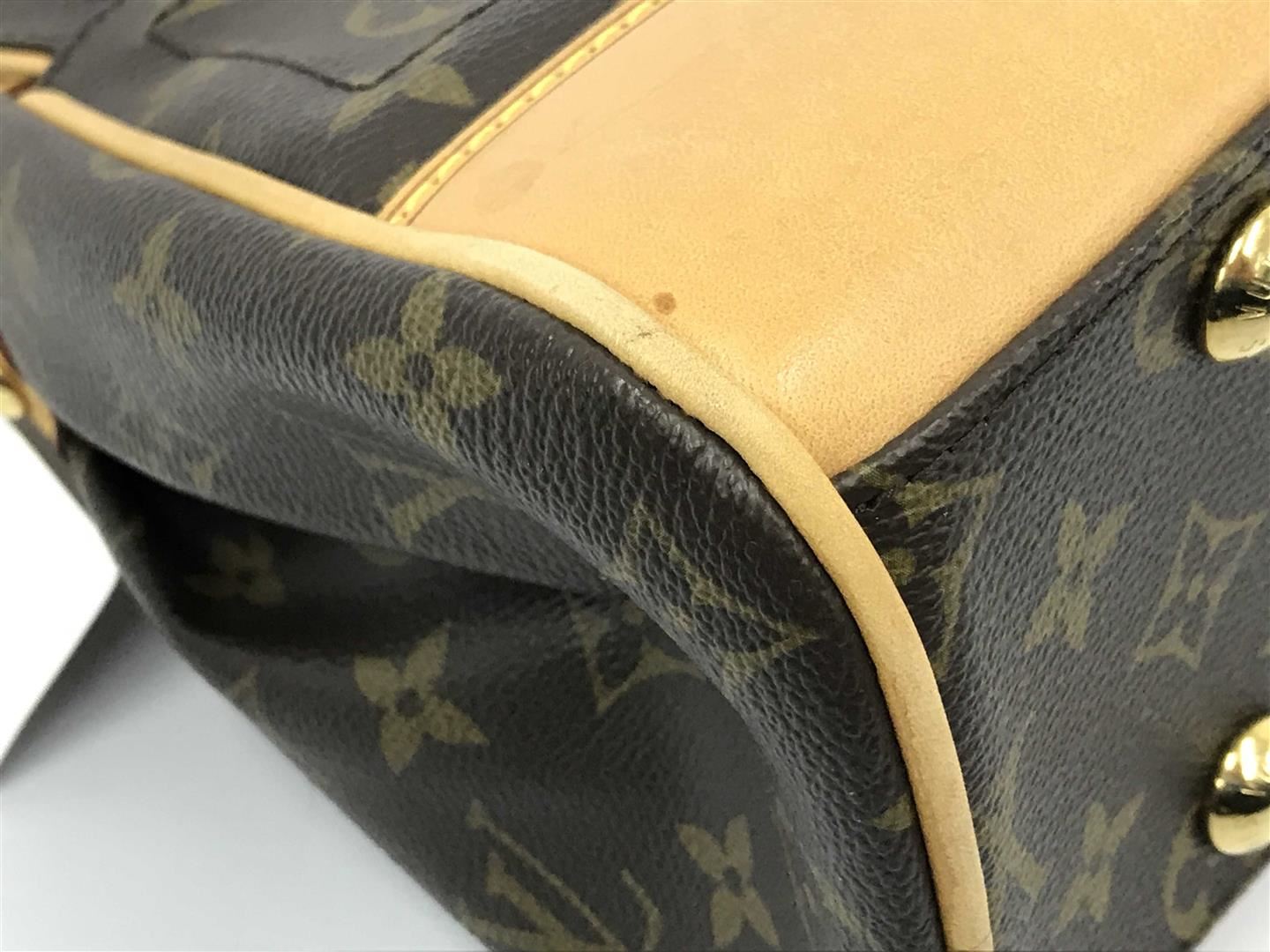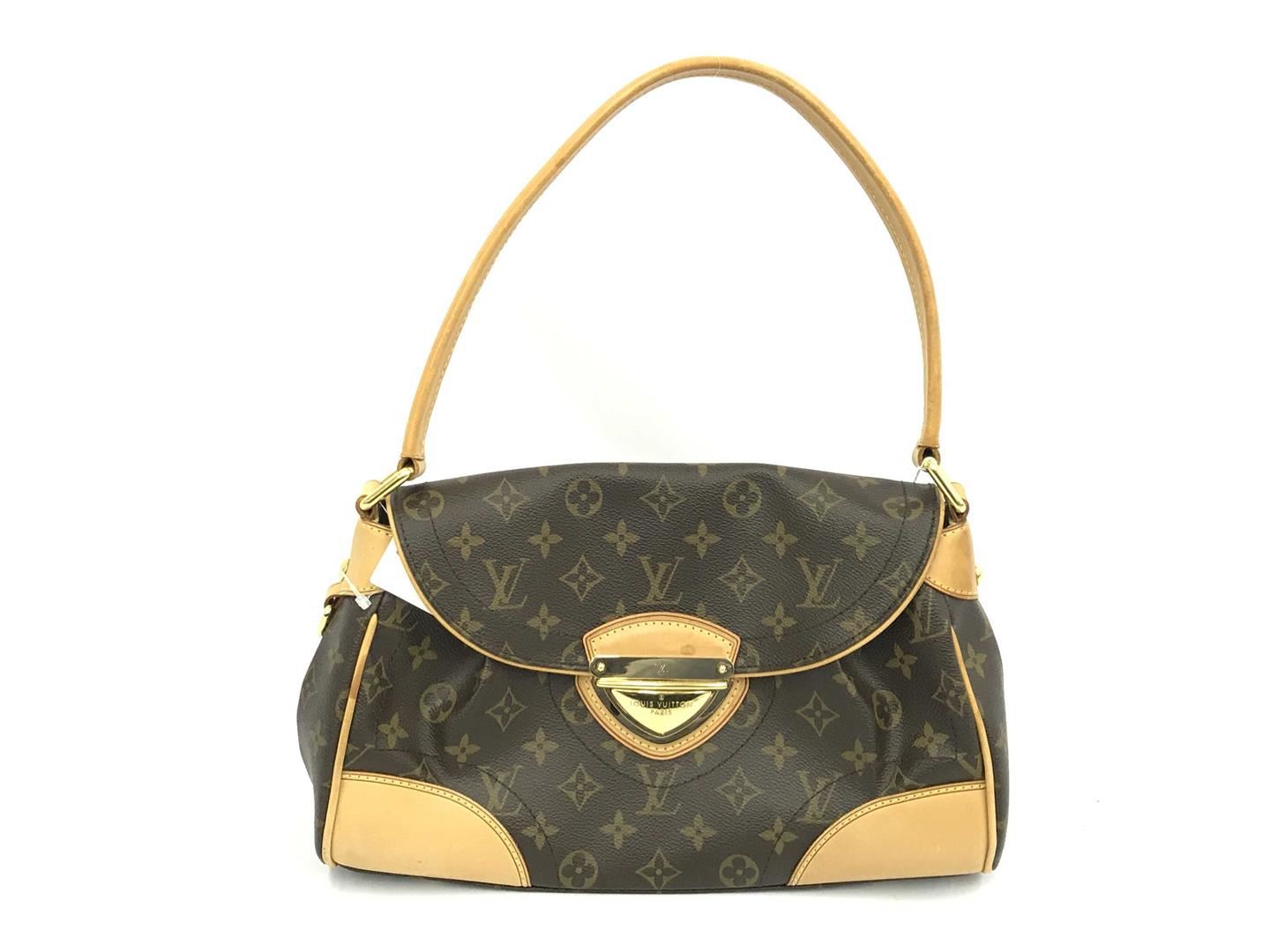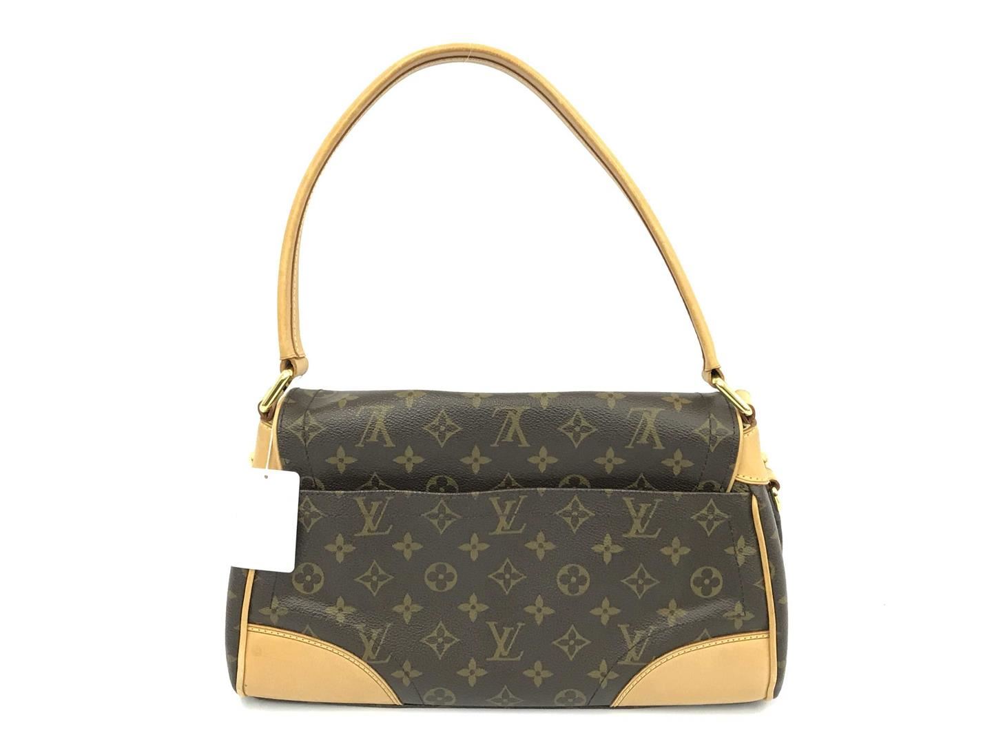 One Louis Vuitton Brown Monogram Canvas Leather Beverly MM Shoulder Bag. Item is sold AS-IS. All available information is listed in the description and shown in the photo. Brown and tan monogram coated canvas Louis Vuitton Beverly MM with gold-tone hardware, tan vachetta leather trim, single flat shoulder strap, single slit pocket at back, protective feet at base, creme Alcantara lining, dual slit pockets at interior wall and push-lock closure at front flap. 13"x5"x9" Shoulder Drop:7.5"/33.02cmx12.70cmx22.86cmx Shoulder Drop:19.05cm