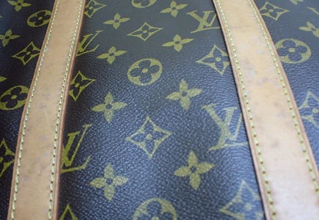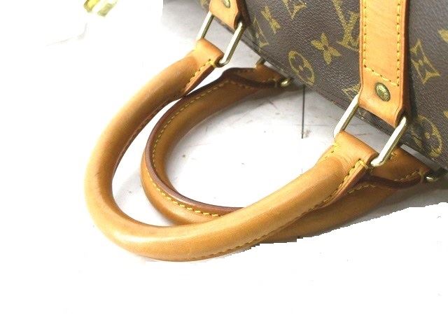 One Louis Vuitton Brown Monogram Canvas Leather Keepall 45cm Duffle Bag. Item is sold AS-IS. All available information is listed in the description and shown in the photo. Brown and tan monogram coated canvas Louis Vuitton Keepall 45 with gold-tone hardware, tan vachetta leather trim, dual flat top handles, brown canvas lining and zip closure at top. 18.5"x8"x10"xBag Drop:4.25"/46.9cmx20.3cmx25.4cmxBag Drop:10.7cm