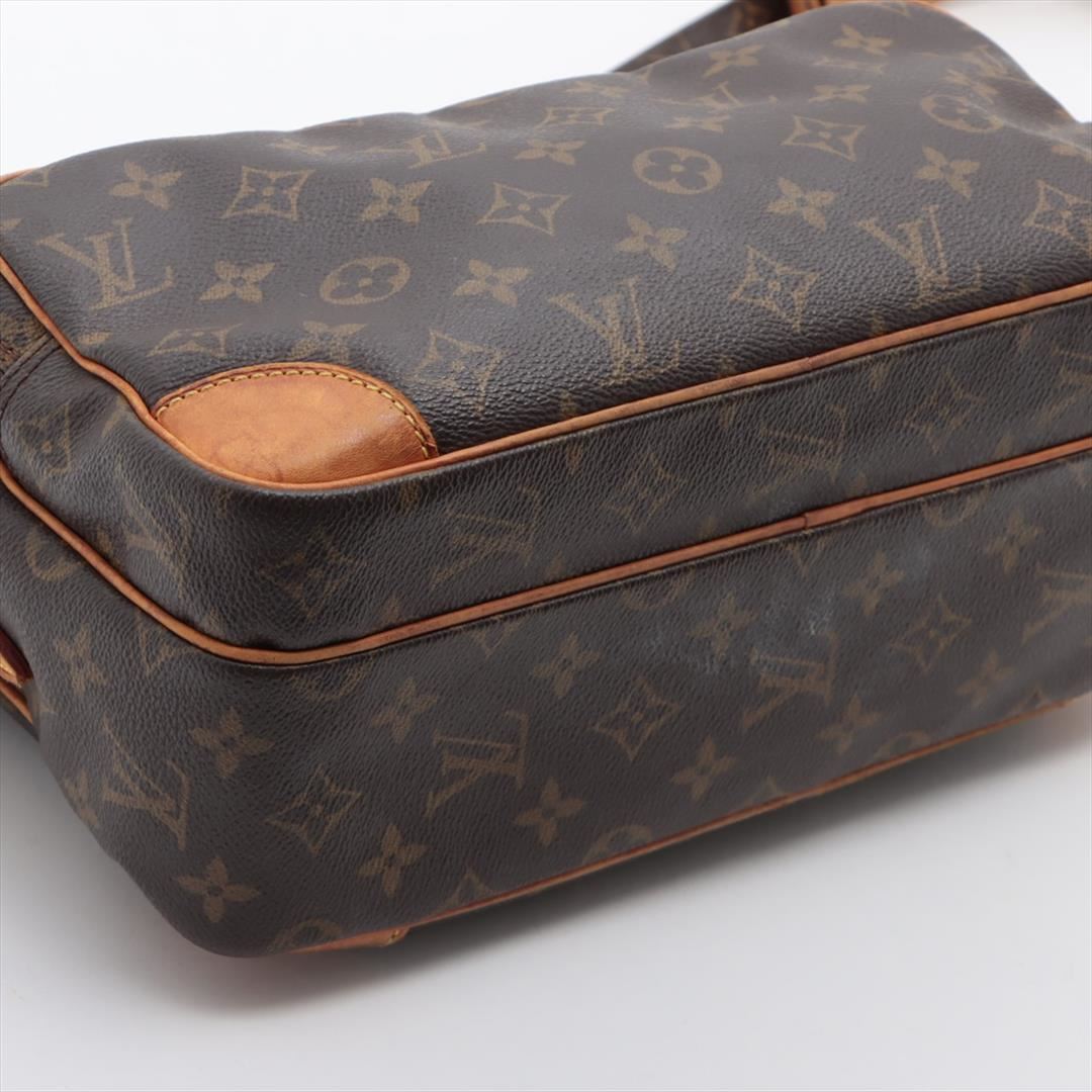 One Louis Vuitton Brown Monogram Canvas Leather Nil Crossbody Bag. Item is sold AS-IS. All available information is listed in the description and shown in the photo. Brown and tan Monogram coated canvas Louis Vuitton Nil crossbody bag with gold-tone hardware, single adjustable shoulder strap, tan leather trim embellishment & single exterior pocket, brown Taiga leather lining & single interior pocket and zip closure at top. Height: 8" Width: 11" Depth: 4" Shoulder Strap Drop: 18"