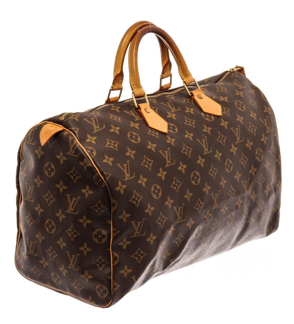 Louis Vuitton Brown Monogram Canvas Leather Speedy 40 Satchel Bag. All available information is listed in the description and shown in the photos. Louis Vuitton Brown Monogram Canvas Leather Speedy 40 Satchel Bag with brass hardware, leather trim, rolled handles & dual shoulder straps, leather trim embellishment, canvas lining & single interior pocket, zip closure at top. Height: 14" Width: 15" Depth: 8", Handle Drop: 4" / 35.56 x 38.1 x 20.32 Cm