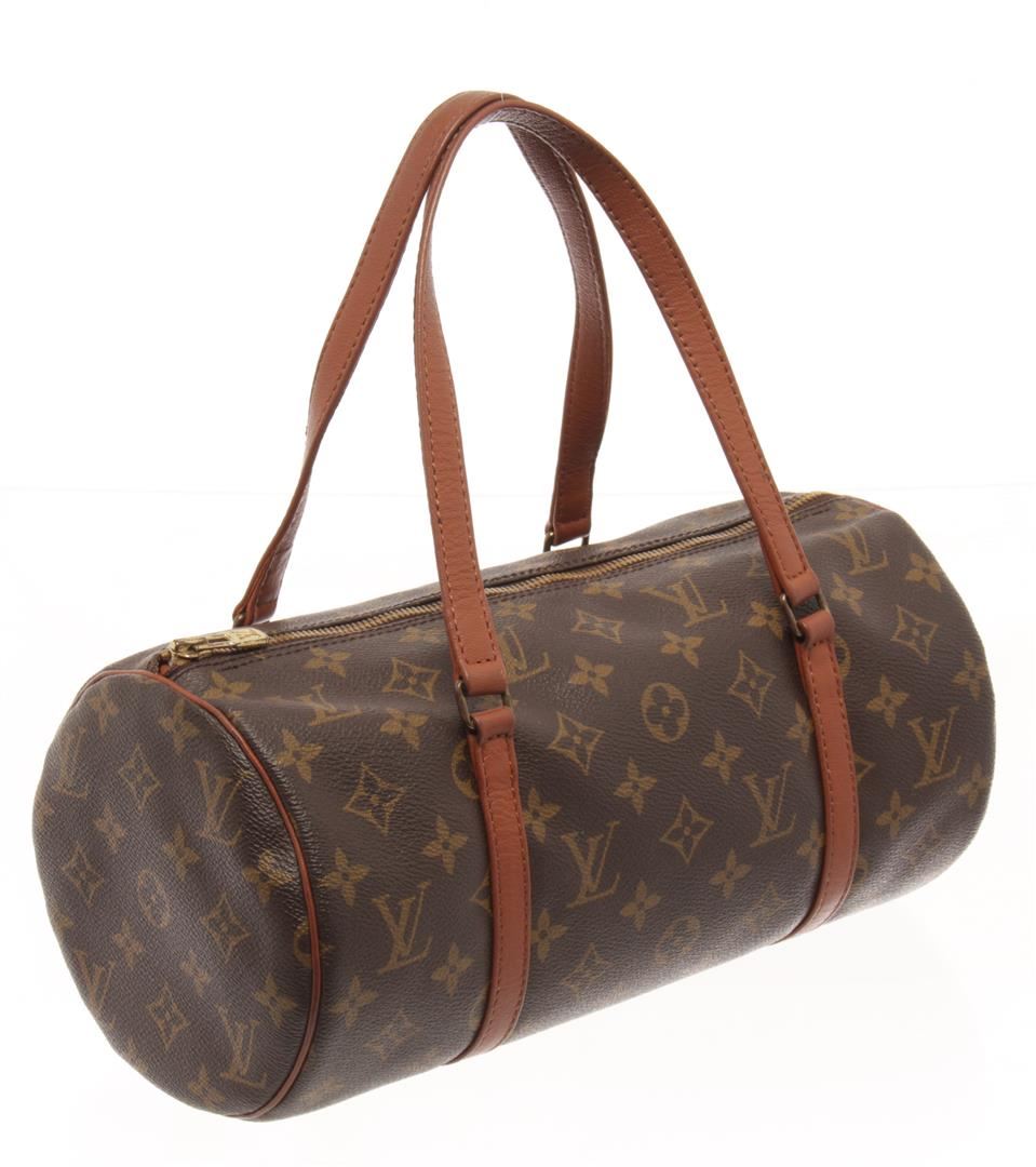 Louis Vuitton Brown Monogram Canvas Papillon 30 Bag. All available information is listed in the description and shown in the photos. louis vuitton brown monogram canvas papillon 30 bag with vintage, brown coated canvas, monogram, brass hardware, dual shoulder straps, canvas lining, zip closure at top. Depth 5.9 in, Height 5.9 in, Width 11.8 in, Handle 6.7 in / Depth 15 cm, Handle 17 cm, Height 15 cm, Width 30 cm