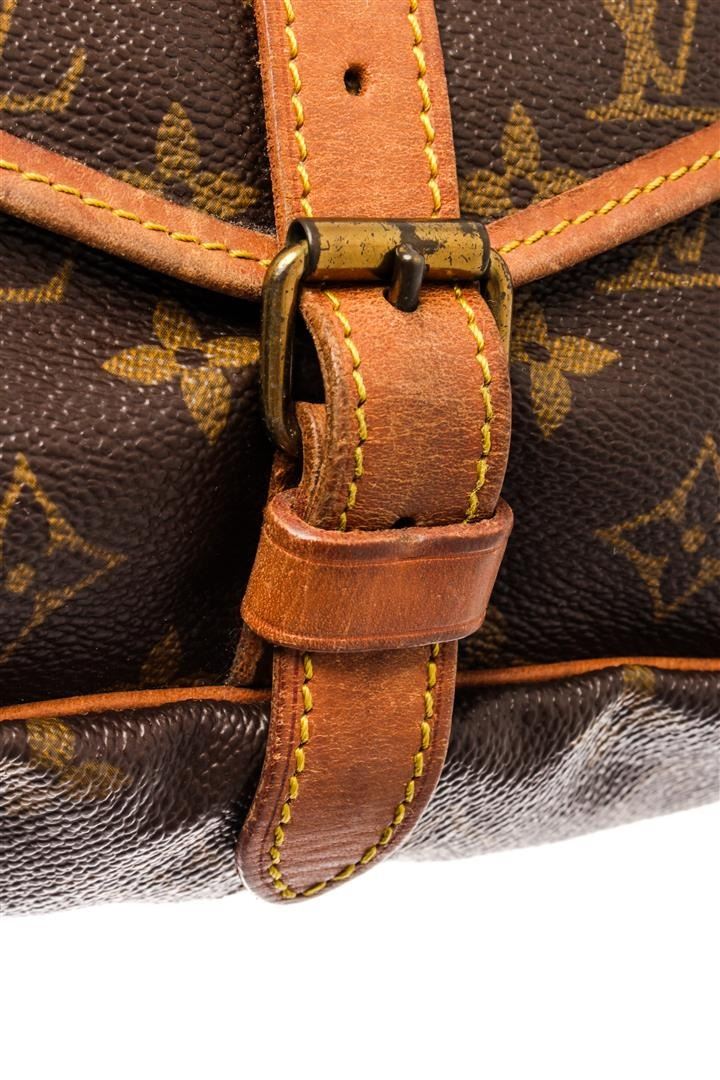 Louis Vuitton Brown Monogram Canvas Saumur 30cm Shoulder Bag. All available information is listed in the description and shown in the photos. Louis Vuitton Brown Monogram Canvas Saumur 30cm Shoulder Bag with brown coated canvas, brass hardware, leather trim, single adjustable shoulder strap, leather trim embellishment, canvas lining & three interior pockets, flap & buckle closures at front. Height: 10" Width: 12" Depth: 9.25", Shoulder Strap Drop: 19.5" / 25.4 x 30.48 x 23.49 Cm