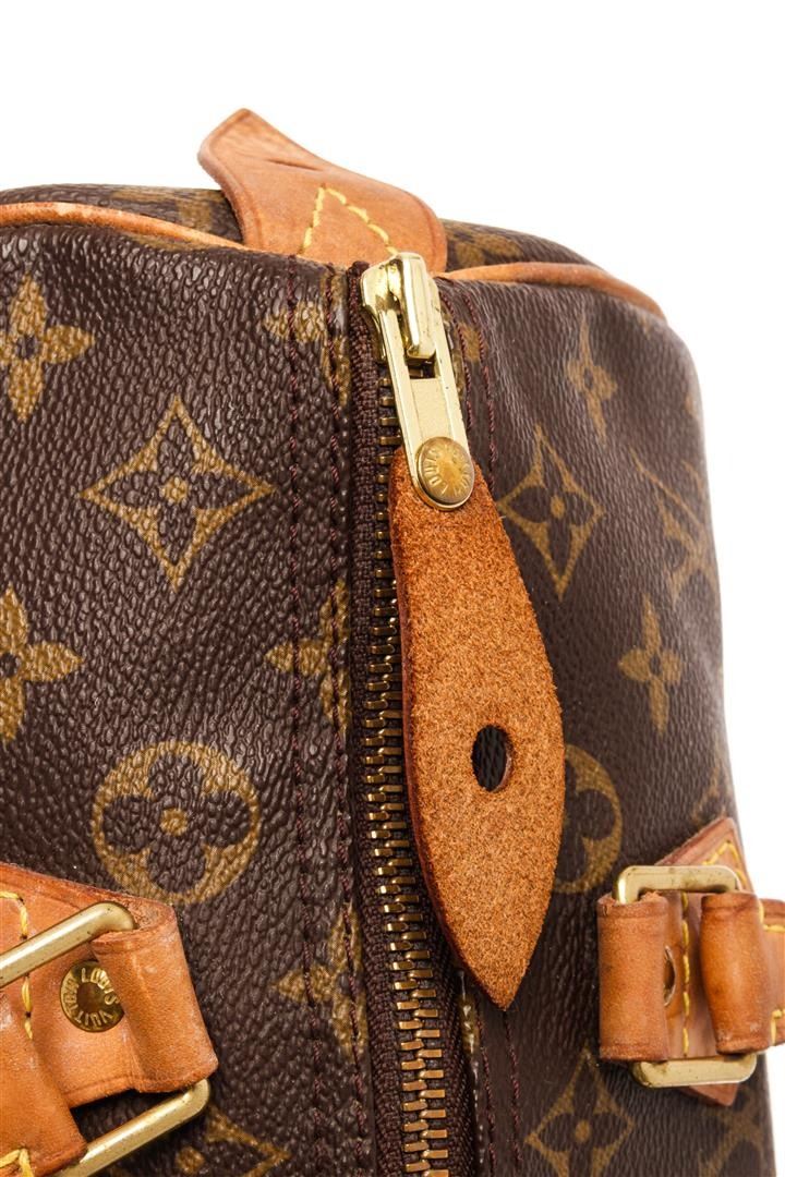 Louis Vuitton Brown Monogram Canvas Speedy 30 Satchel Bag. All available information is listed in the description and shown in the photos. Louis Vuitton Brown Monogram Canvas Speedy 30 Satchel Bag with brass hardware, leather trim, dual rolled handles, leather trim embellishment, canvas lining & single interior pocket, zip closure at top. Height: 8.5" Width: 12" Depth: 6.5", Handle Drop: 3.25" / 21.59 x 30.48 x 16.51 Cm