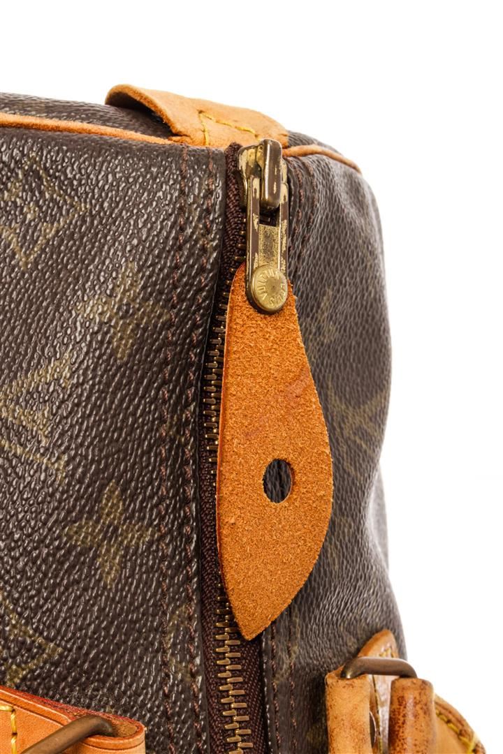 Louis Vuitton Brown Monogram Canvas Speedy 35 Satchel Bag. All available information is listed in the description and shown in the photos. Louis Vuitton Brown Monogram Canvas Speedy 35 Satchel Bag with brass hardware, dual rolled handles, leather trim embellishment, canvas lining & single interior pocket, zip closure at top. Height: 10.75" Width: 13" Depth: 7", Handle Drop: 3.75" / 27.30 x 33.02 x 17.78 Cm