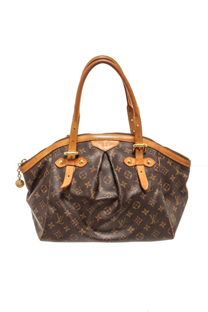 One Louis Vuitton Brown Monogram Canvas Tivoli GM Tote Bag. Item is sold AS-IS. All available information is listed in the description and shown in the photo. louis vuitton brown monogram canvas tivoli gm tote bag with gold-tone hardware, brown monogram canvas leather trim, two adjustable top handles, top zip fastening, internal patch pocket internal logo patch, metal feet Depth 7.5 in, Height 10.6 in, Width 12.8 in / Depth 19 cm, Height 27 cm, Width 32.5 cm