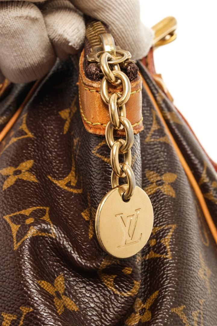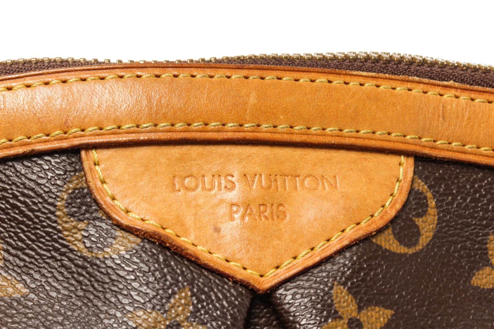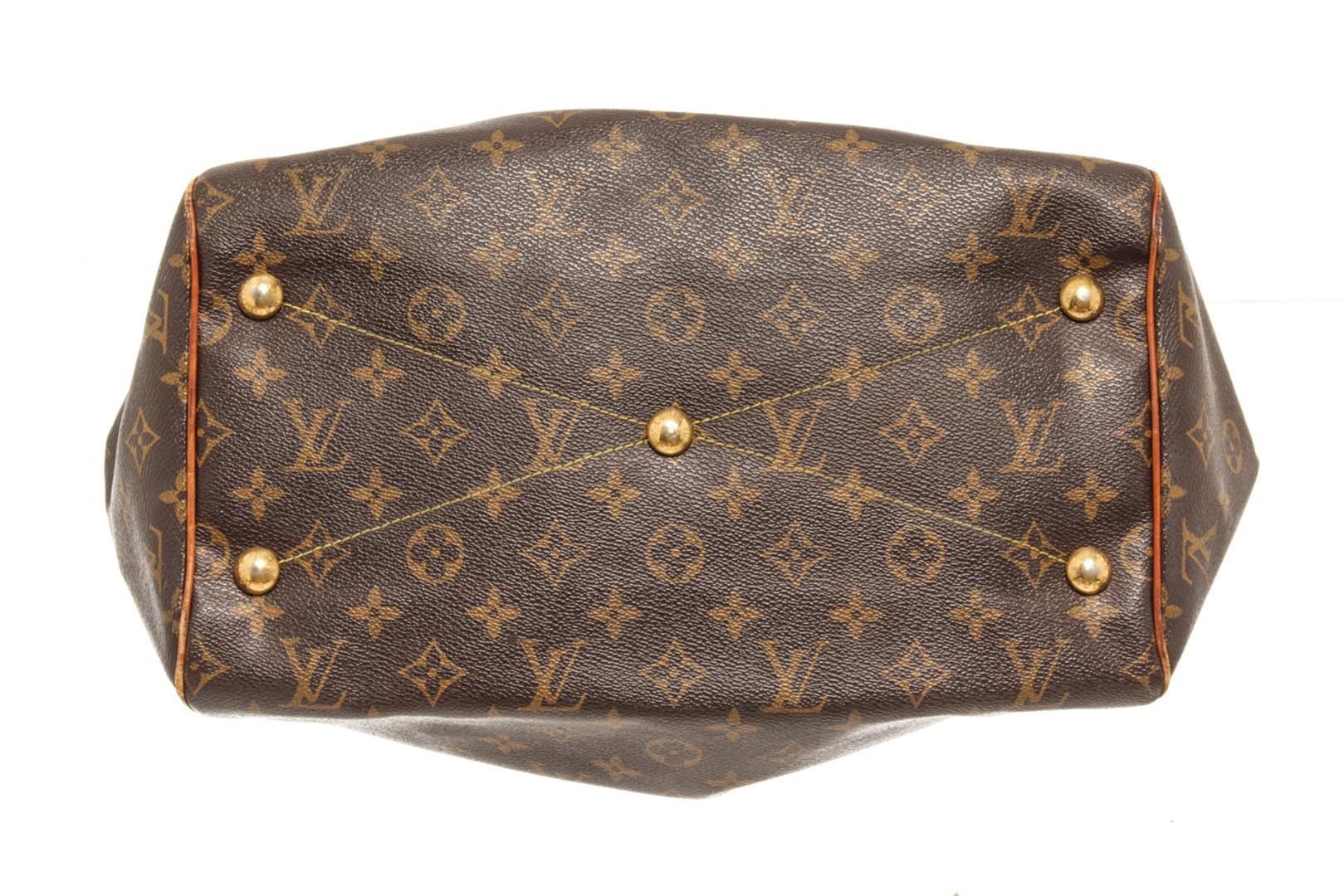 One Louis Vuitton Brown Monogram Canvas Tivoli GM Tote Bag. Item is sold AS-IS. All available information is listed in the description and shown in the photo. louis vuitton brown monogram canvas tivoli gm tote bag with gold-tone hardware, brown monogram canvas leather trim, two adjustable top handles, top zip fastening, internal patch pocket internal logo patch, metal feet Depth 7.5 in, Height 10.6 in, Width 12.8 in / Depth 19 cm, Height 27 cm, Width 32.5 cm