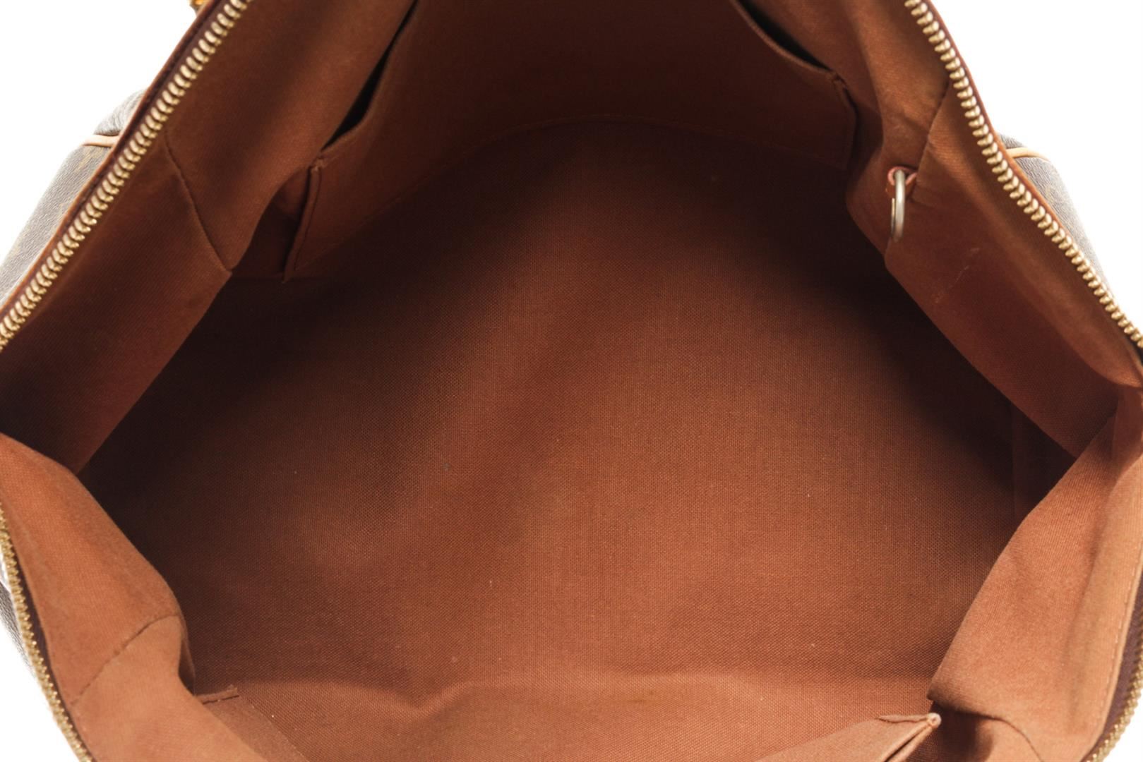 One Louis Vuitton Brown Monogram Canvas Tivoli GM Tote bag. Item is sold AS-IS. All available information is listed in the description and shown in the photo. louis vuitton brown monogram canvas tivoli gm tote bag with gold-tone hardware, brown monogram canvas leather trim, two adjustable top handles, top zip fastening, internal patch pocket internal logo patch, metal feet, zip closure. There is some wear on the leather lining. Please refer to photos. Depth 7.5 in, Height 10.6 in, Width 12.8 in / Depth 19 cm, Height 27 cm, Width 32.5 cm