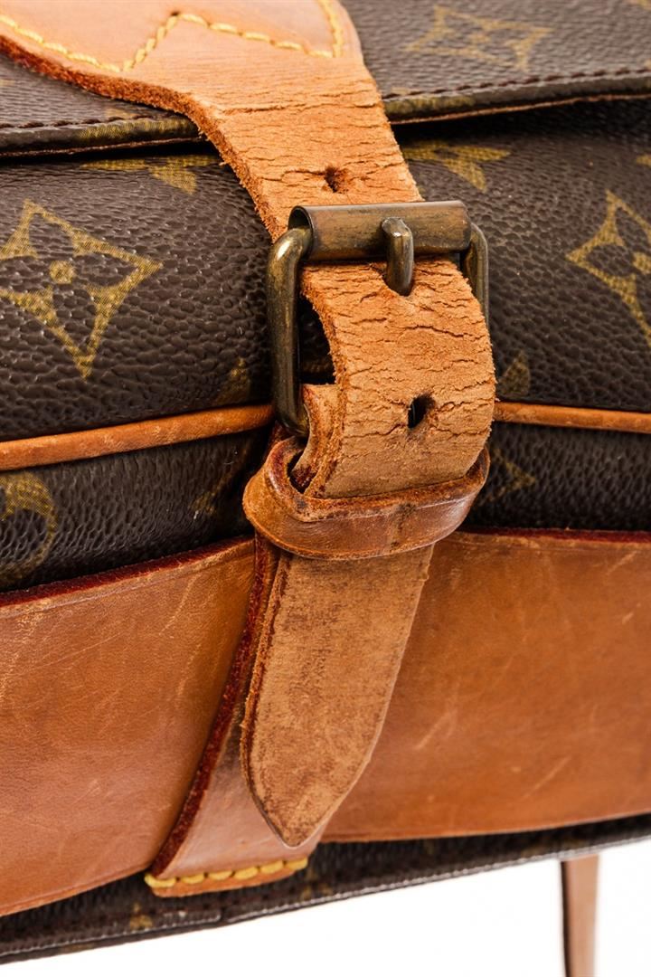 Louis Vuitton Brown Monogram Cartouchiere GM Messenger Bag. All available information is listed in the description and shown in the photos. Louis Vuitton Brown Monogram Cartouchiere GM Messenger Bag with brown printed, brass hardware, single adjustable shoulder strap, leather lining, buckle closure at front. Height: 9.25" Width: 10.25" Depth: 3", Shoulder Strap Drop Max: 21.5" / 23.49 x 26.03 x 7.62 Cm