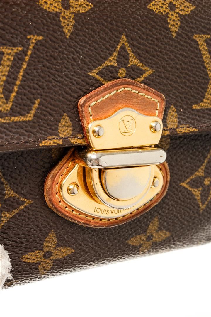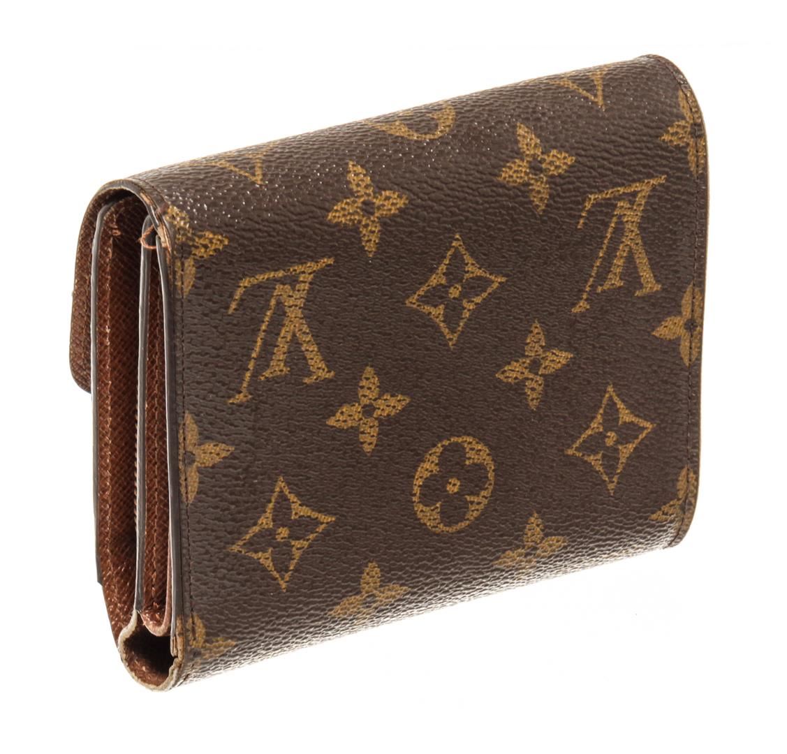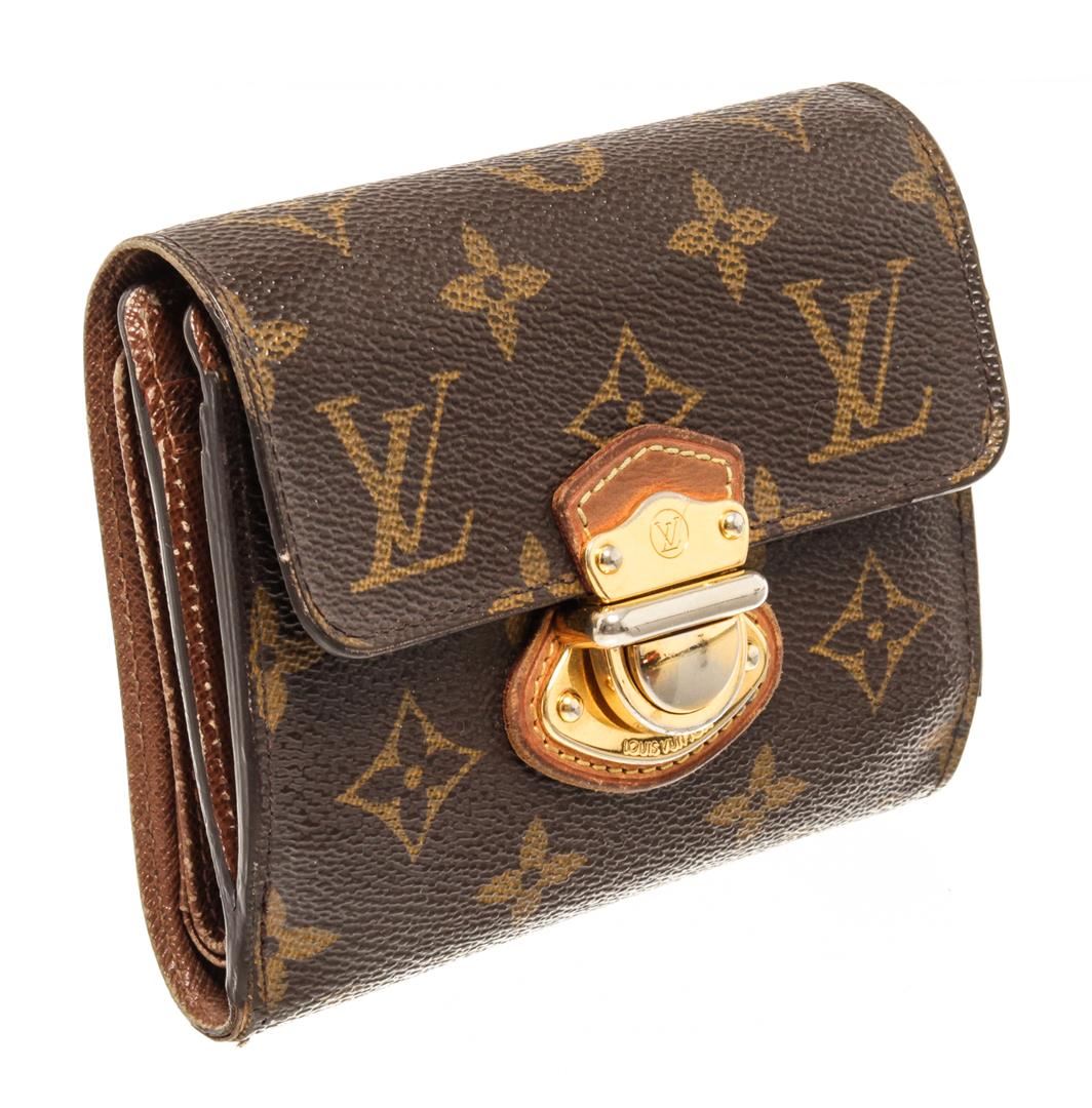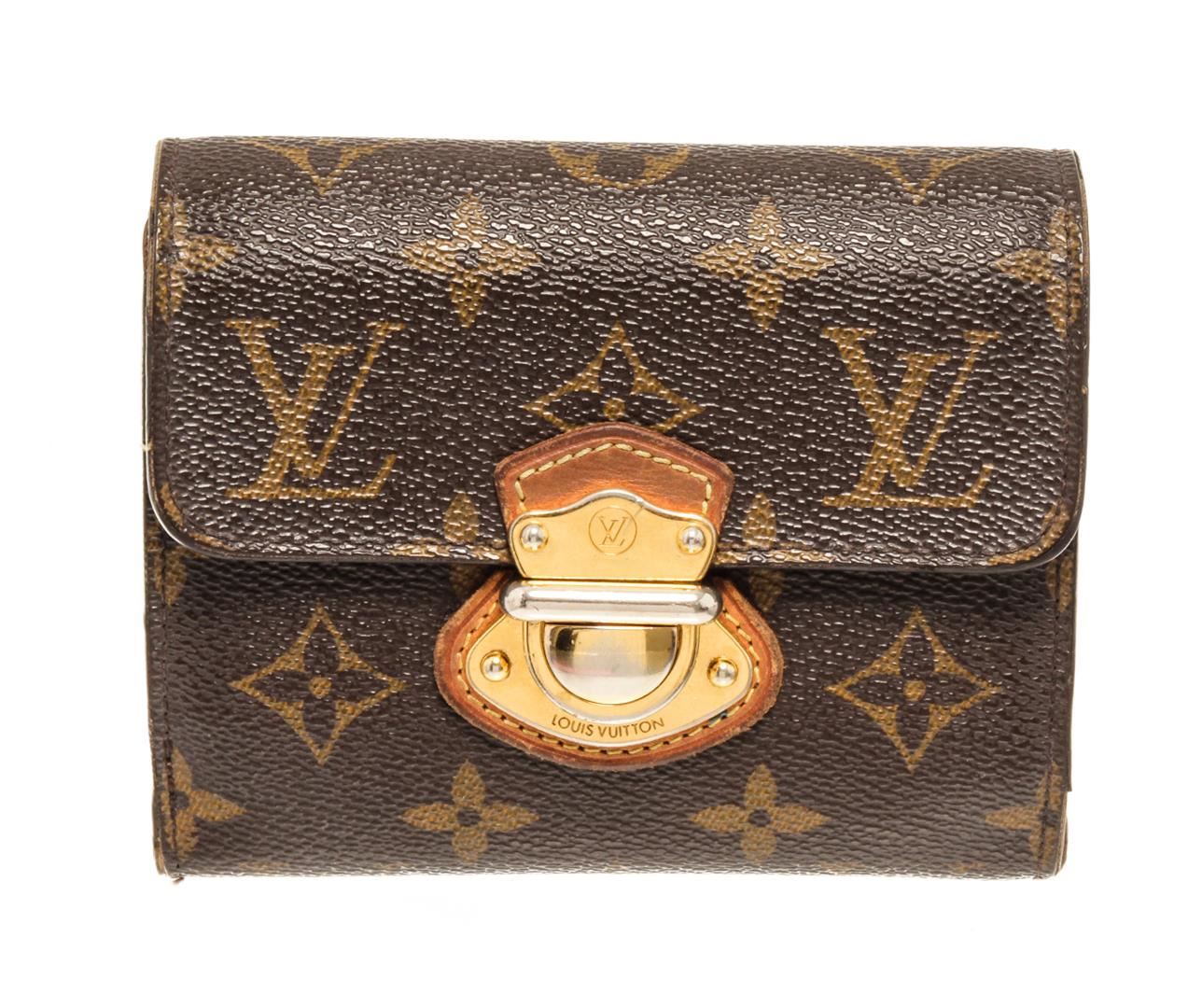 One Louis Vuitton Brown Monogram Koala Wallet. Item is sold AS-IS. All available information is listed in the description and shown in the photo. Louis Vuitton brown monogram Koala wallet with coated canvas exterior, brown leather lining, gold-tone hardware, trim brown vachetta leather, interior zip compartment, flap and push-lock closure, and multiple card slots. Interior is very worn. Please refer to photos.