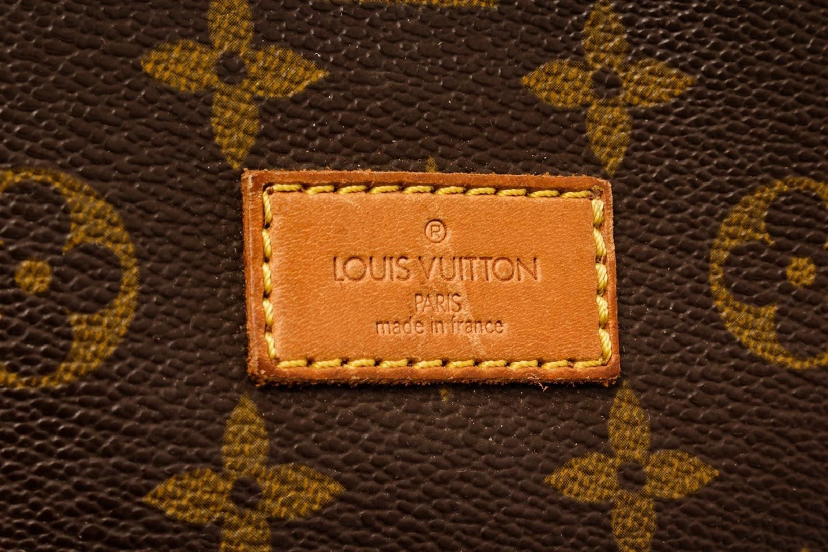 Louis Vuitton Brown Monogram Leather Saumur 43cm Shoulder Bag. All available information is listed in the description and shown in the photos. Louis Vuitton Brown Monogram Leather Saumur 43cm Shoulder Bag with vintage, brown coated canvas, brass hardware, single adjustable shoulder strap, leather trim embellishment, canvas lining & three interior pockets, buckle closure at front, includes dust bag. Height: 13.75" Width: 17" Depth: 8.25", Shoulder Strap Drop Max: 19.5" / 34.92 x 43.18 x 20.95 Cm