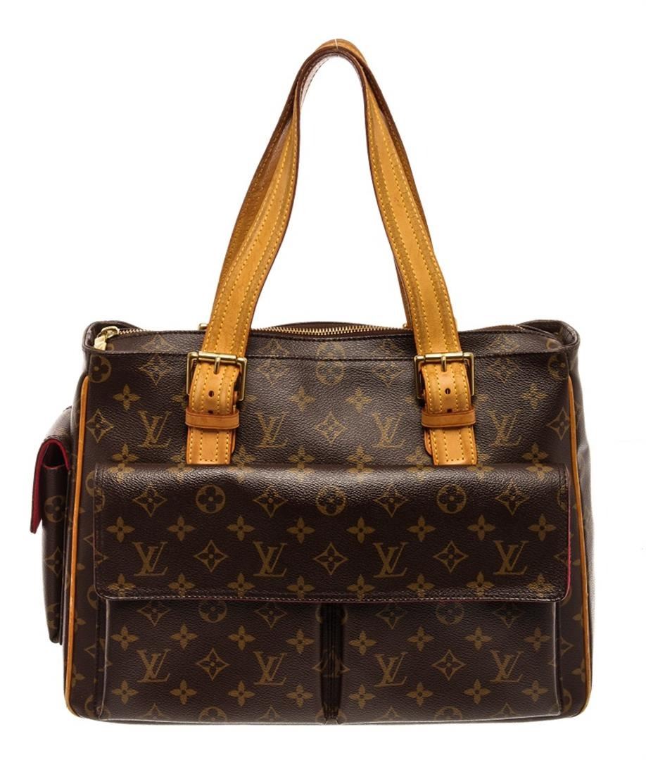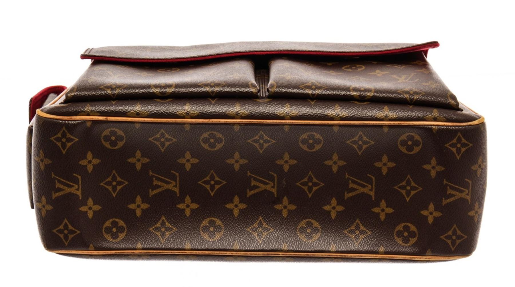Louis Vuitton Brown Monogram Leather Viva Cite GM Top Handle Bag. All available information is listed in the description and shown in the photos. Louis Vuitton Brown Monogram Leather Viva Cite GM Top Handle Bag with brass hardware, dual shoulder straps, leather trim embellishment & three exterior pockets, alcantara lining & dual interior pockets, adjustable tan handles, zip closure at top. Height: 11" Width: 15.5" Depth: 4", Shoulder Strap Drop: 7.5" / 27.94 x 39.37 x 10.16 Cm