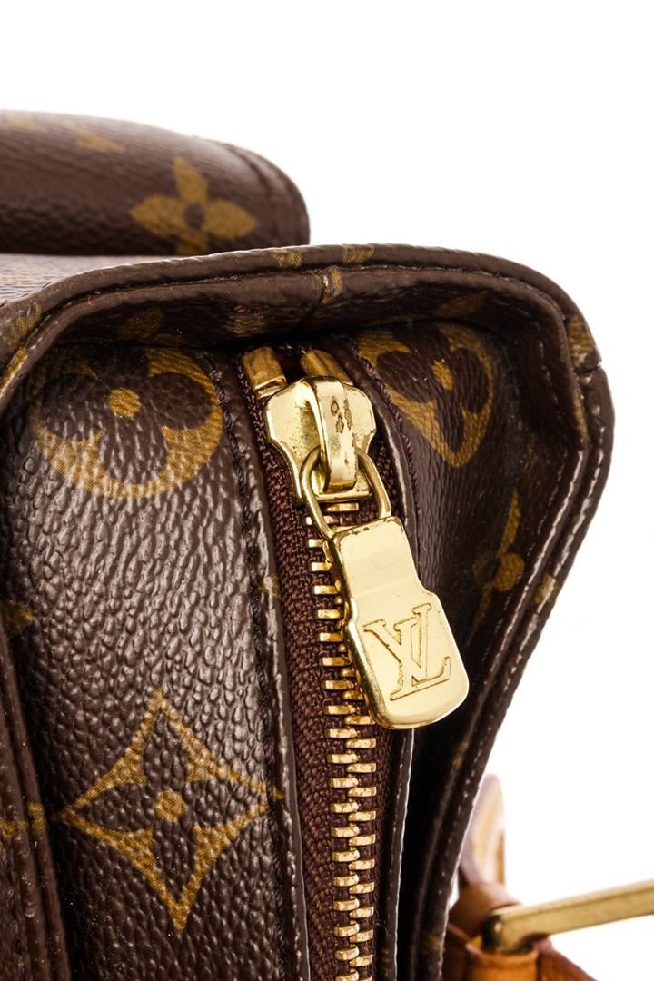 Louis Vuitton Brown Monogram Leather Viva Cite GM Top Handle Bag. All available information is listed in the description and shown in the photos. Louis Vuitton Brown Monogram Leather Viva Cite GM Top Handle Bag with brass hardware, dual shoulder straps, leather trim embellishment & three exterior pockets, alcantara lining & dual interior pockets, adjustable tan handles, zip closure at top. Height: 11" Width: 15.5" Depth: 4", Shoulder Strap Drop: 7.5" / 27.94 x 39.37 x 10.16 Cm