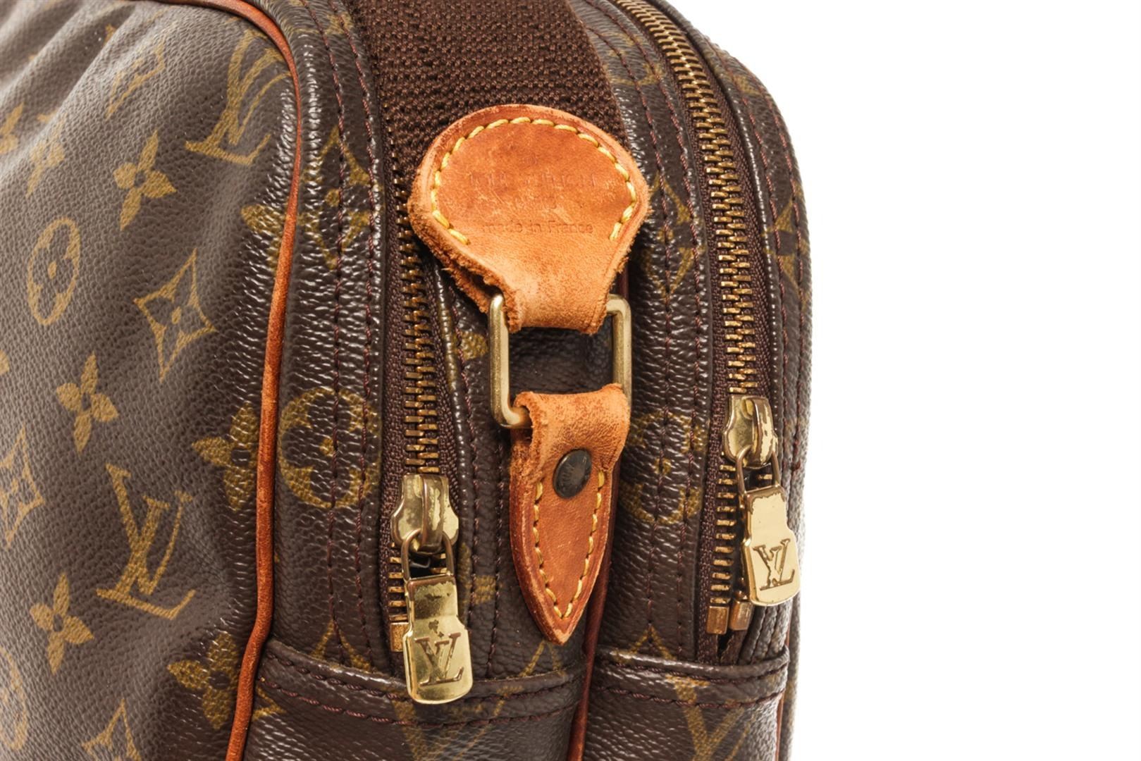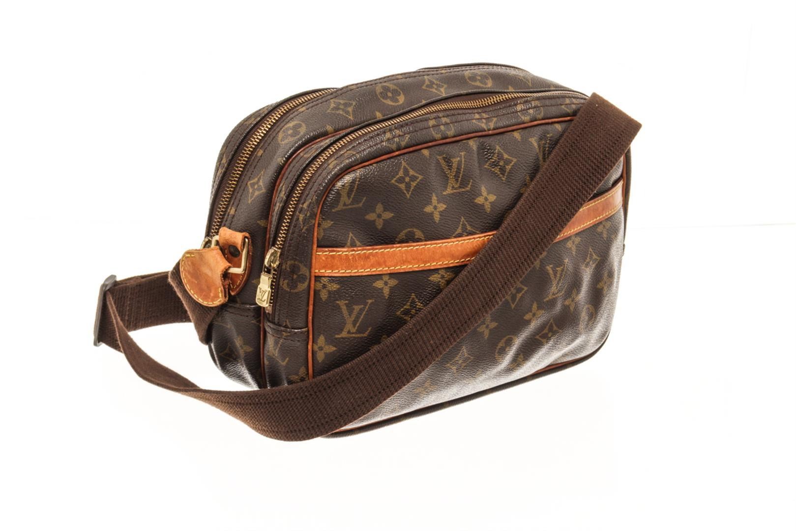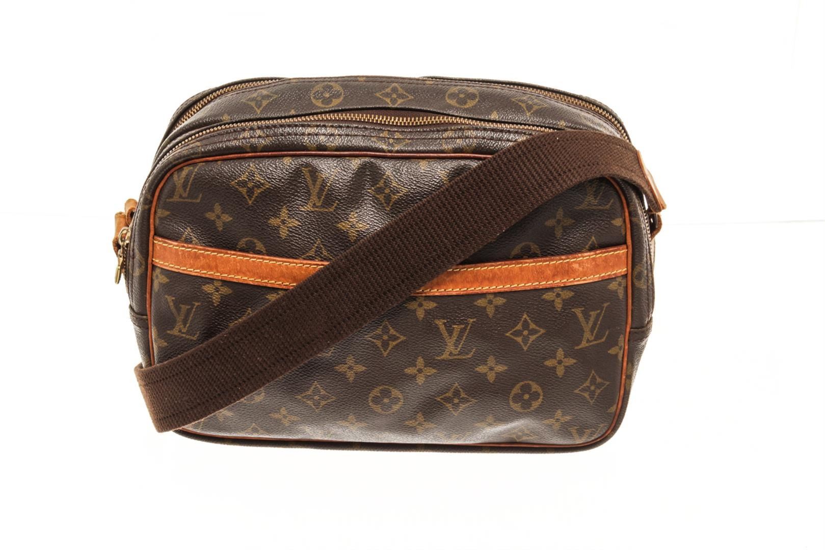 One Louis Vuitton Brown Monogram Reporter PM Crossbody Bag. Item is sold AS-IS. All available information is listed in the description and shown in the photo. louis vuitton brown monogram reporter pm crossbody bag with the reporter pm features a monogram canvas body with leather trim, an exterior front slip pocket, an adjustable flat strap, double compartments with top zip closures, and interior slip pockets. Height: 7.1" Width: 10.6" Depth: 4.7" , Handle Drop: 5" / 18.03 x 26.92 x 11.93 Cm