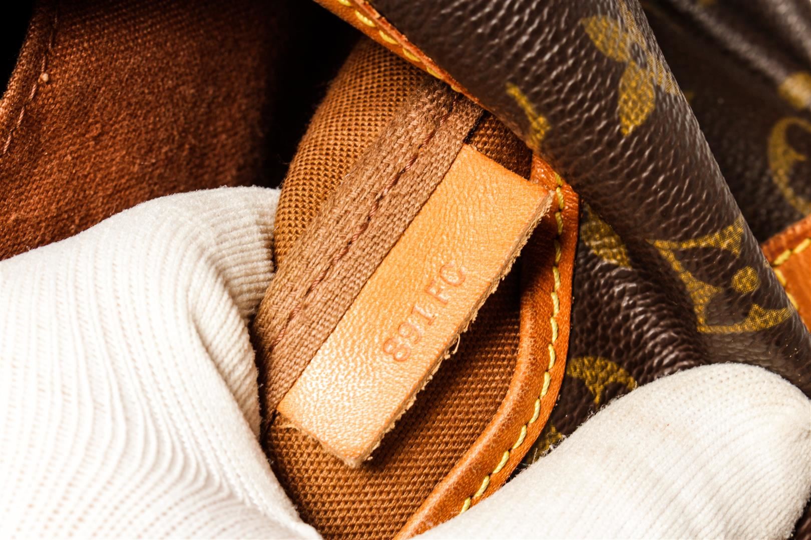 Louis Vuitton Brown Monogram Saumur 35cm Crossbody Bag. All available information is listed in the description and shown in the photos. Louis Vuitton Brown Monogram Saumur 35cm Crossbody Bag with gold-tone hardware, tan vachetta leather trim, interior zip pockets, canvas lining, leather shoulder strap, and flap closure.