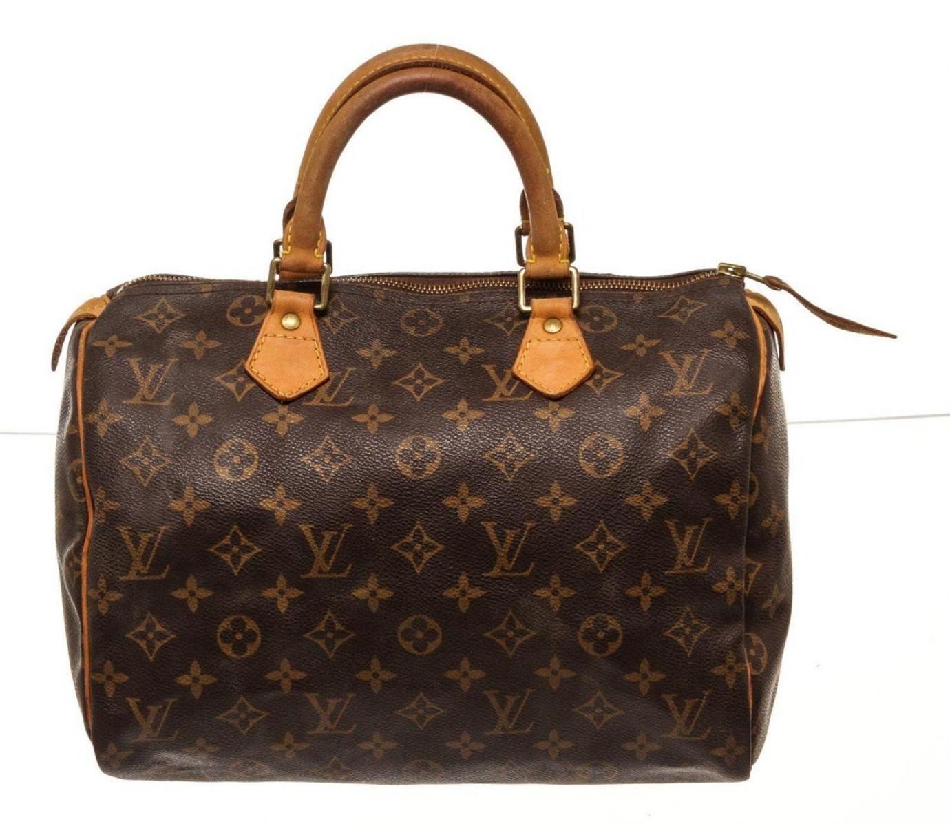 Louis Vuitton Brown Speedy 30cm Satchel Bag. Louis Vuitton Brown Speedy 30cm Satchel Bag with material monogram canvas, gold-tone hardware, trim tan vachetta leather, dual top handle and zipper closure.