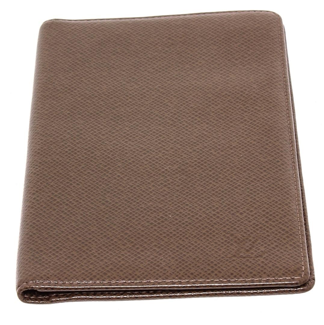 Louis Vuitton brown taiga leather long checkbook wallet with debossed logo accent at front, tonal Taiga leather lining, foil-stamped logo accent, three interior slit compartments, six card slots and bifold closure.