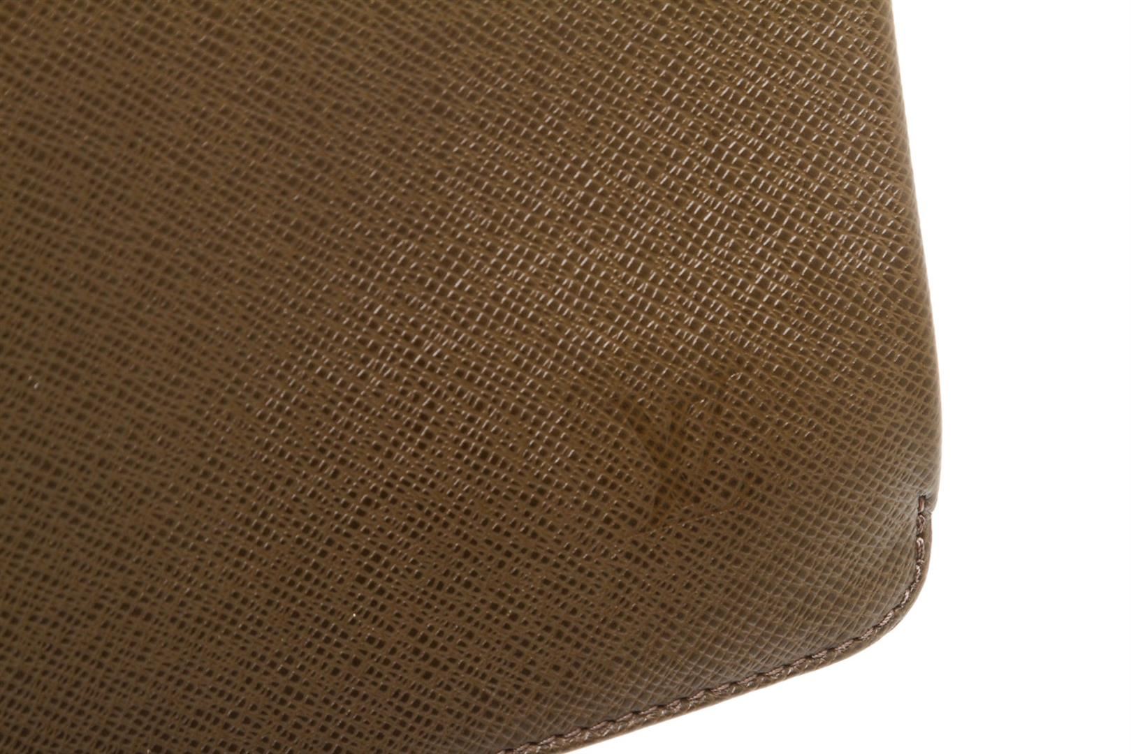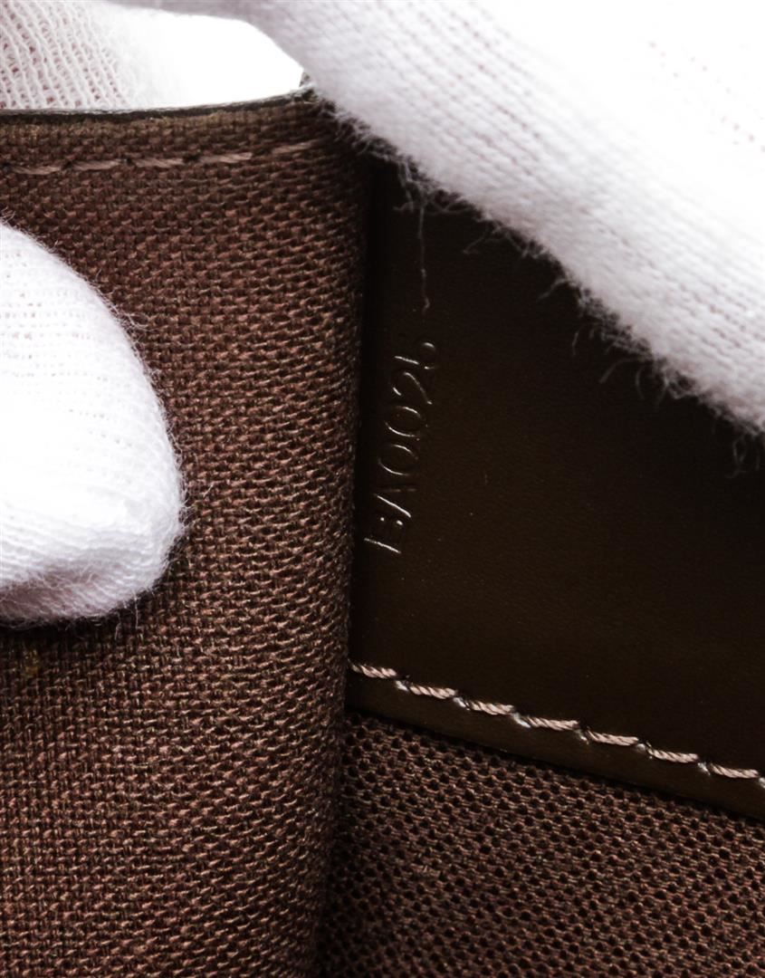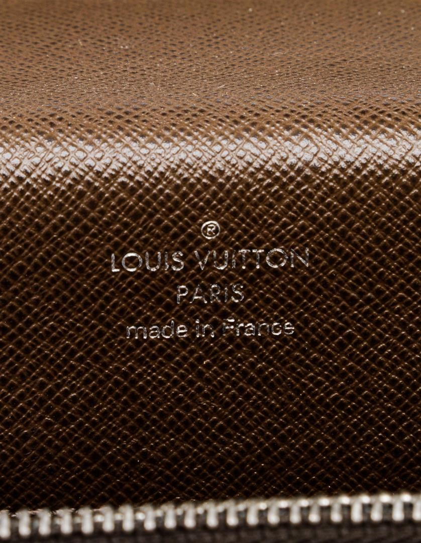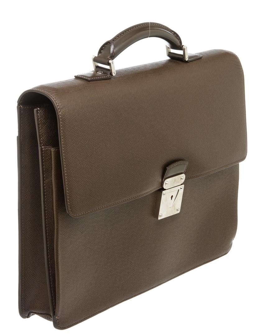 Brown Taiga leather Louis Vuitton Robusto briefcase with silver-tone hardware, slit pocket at back wall, canvas and leather interior lining, two interior compartments, three interior slit pockets, interior zip pocket and front security push-clasp closure.