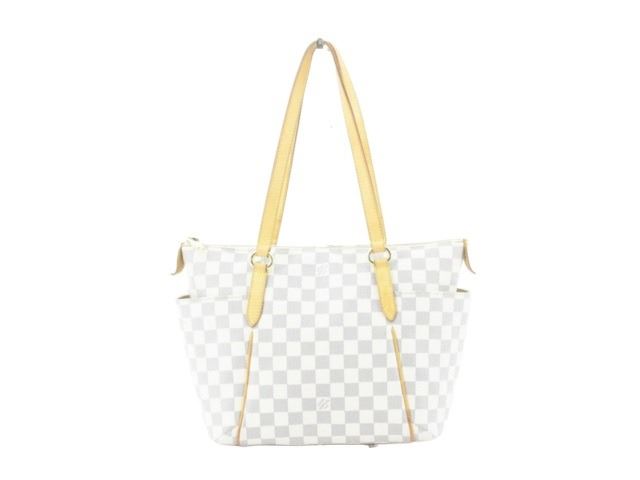 One Louis Vuitton Damier Azur Canvas Leather Totally PM Tote Bag. Item is sold AS-IS. All available information is listed in the description and shown in the photo. Ivory and navy Damier Azur coated canvas Louis Vuitton Totally PM with gold-tone hardware, tan vachetta leather trim, dual flat shoulders straps, dual slit pockets at exterior, neutral canvas lining, dual slit pockets at interior walls and zip closure at top. . Height: 10.5" Width: 15" Depth: 5.5" Shoulder Strap Drop: 9.5"